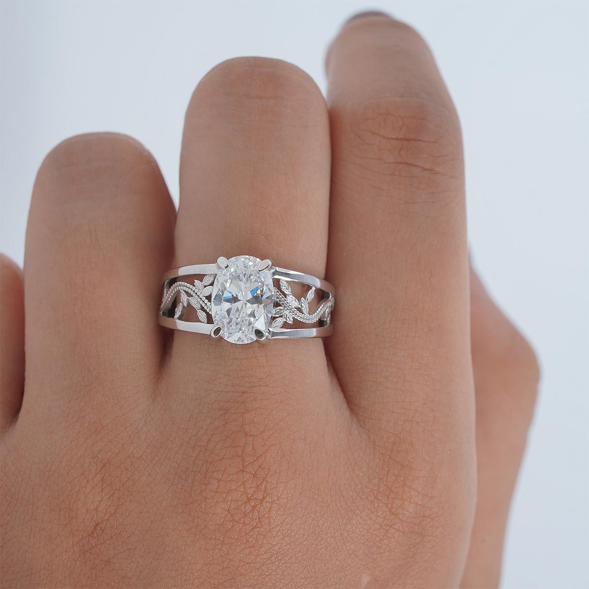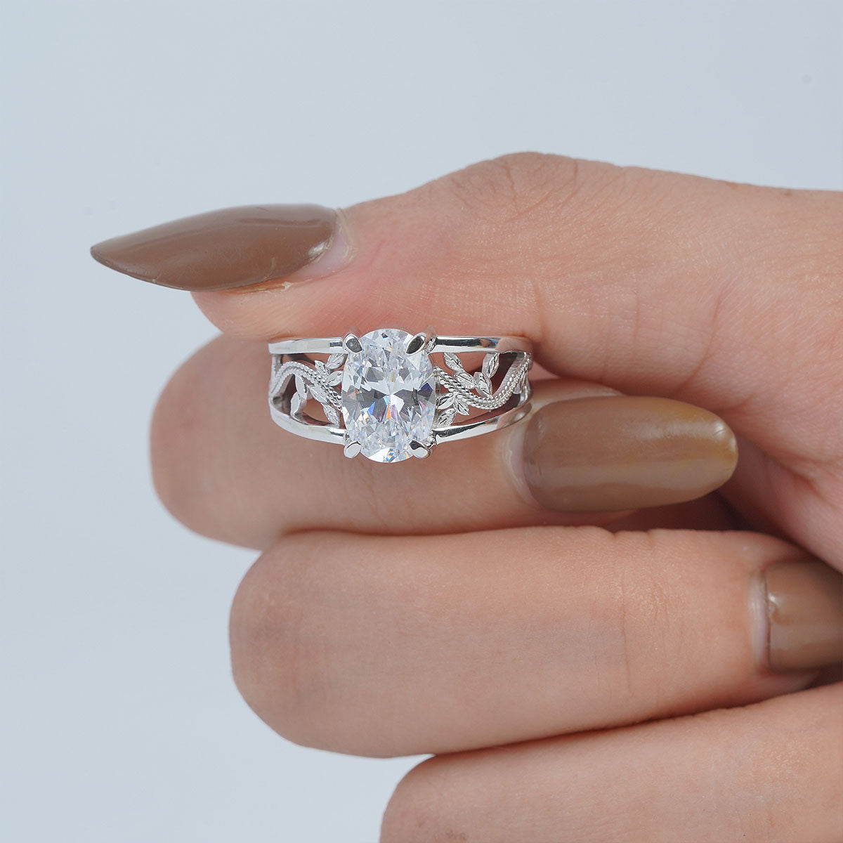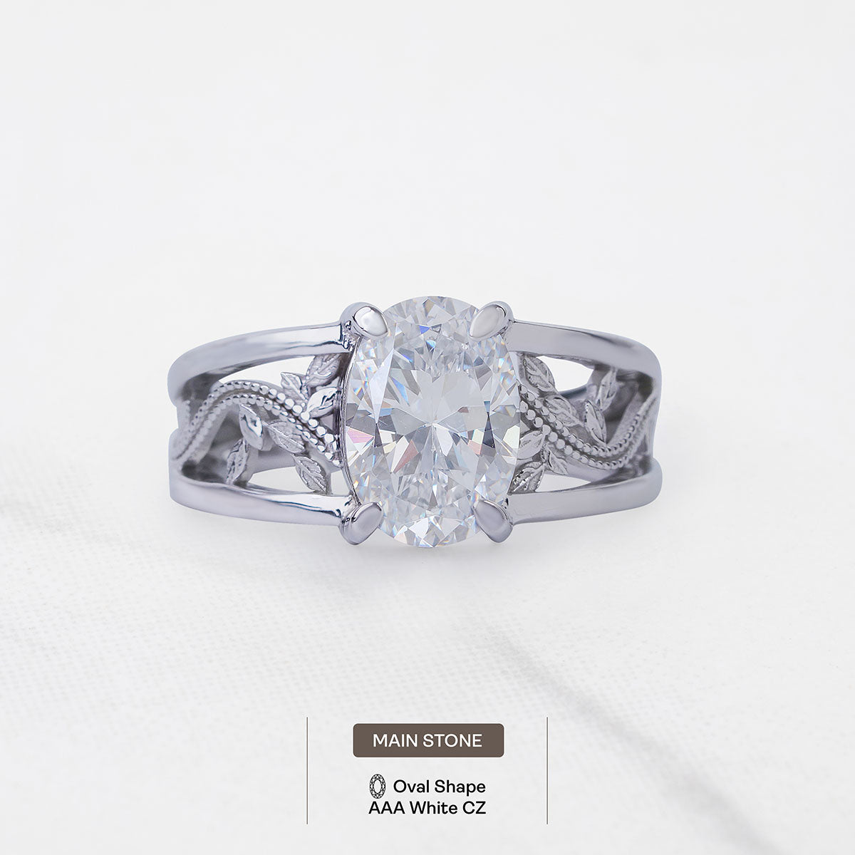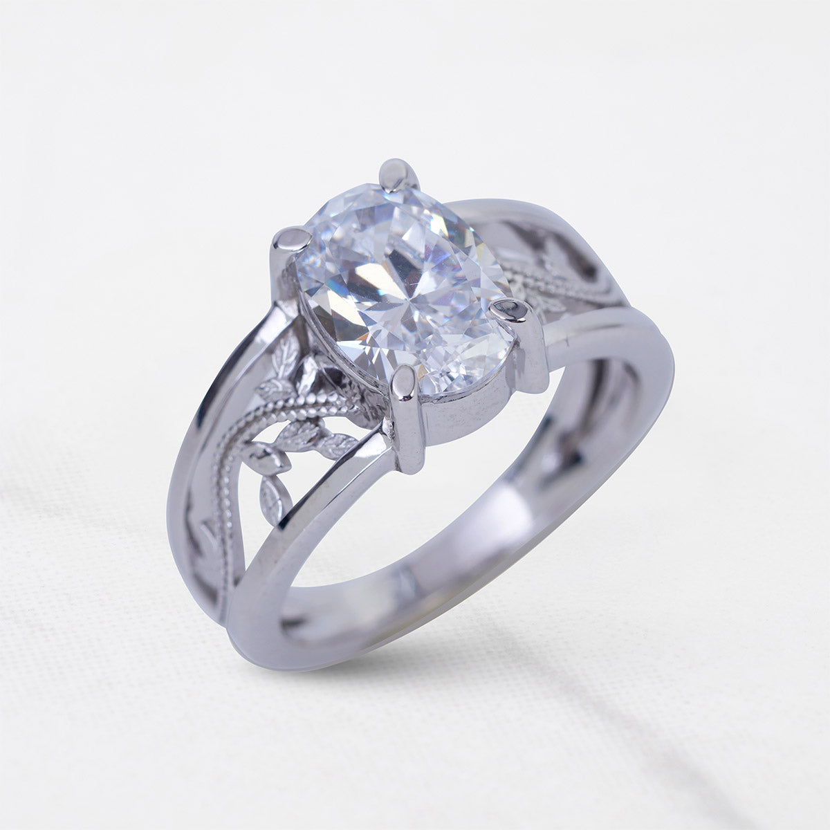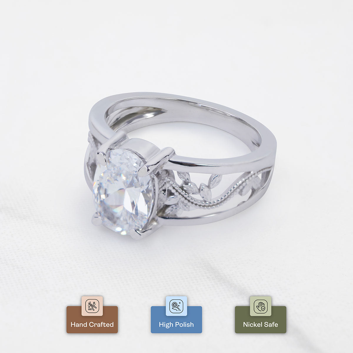 Nature Inspired Wedding Ring Solitaire Cubic Zirconia Floral Leaf