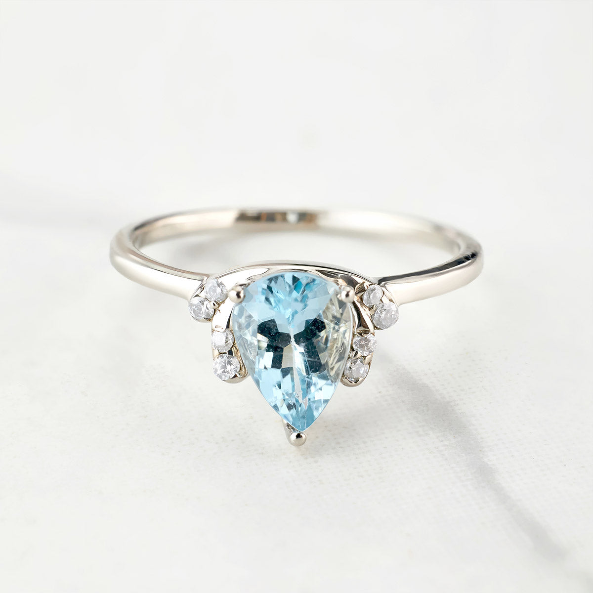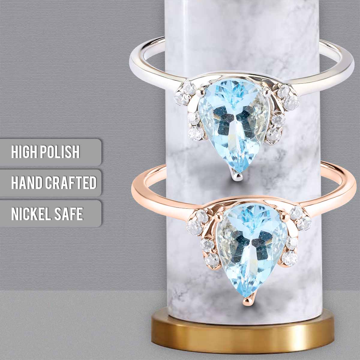 Pear Cut Natural Sky Blue Topaz Ring Art Deco Engagement Ring