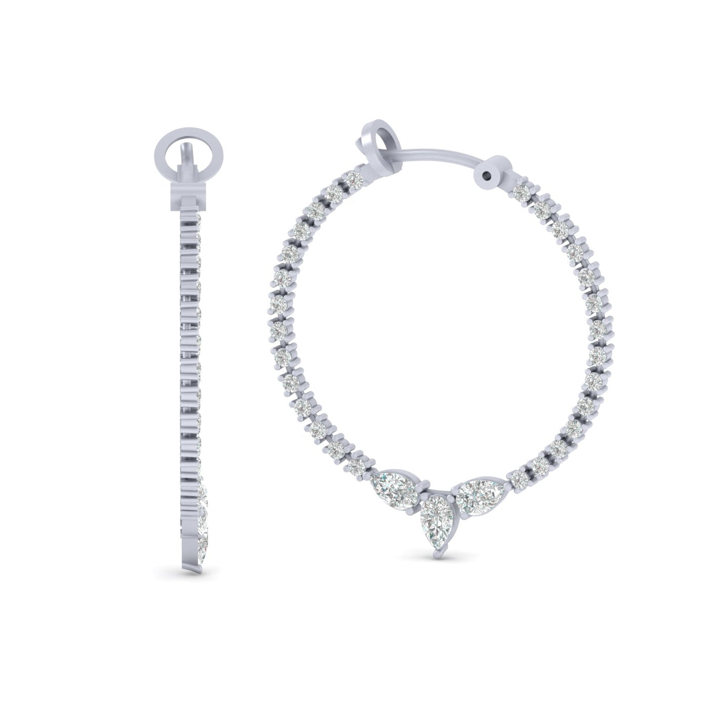 Pear Diamond Hoop Earrings White Gold Wedding Earrings Jewelry