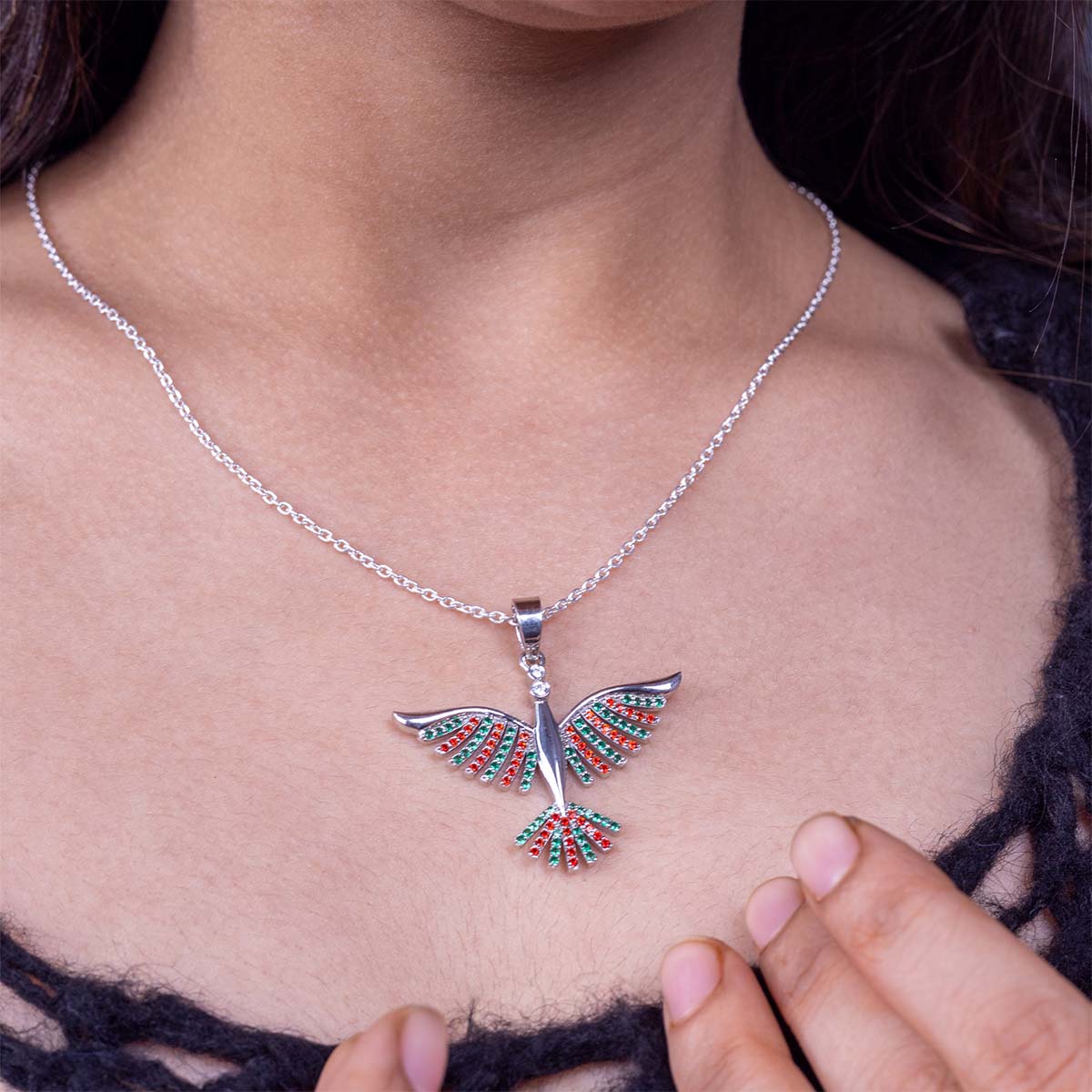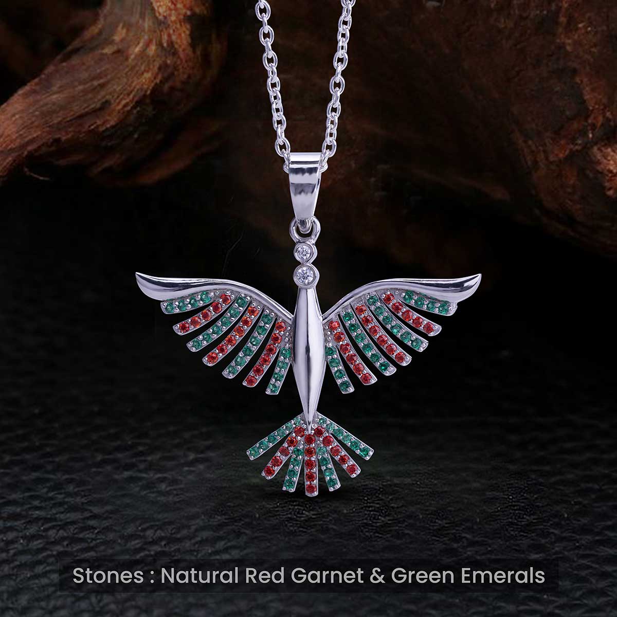 This phoenix pendant is breathtaking! The natural gemstones give it a vibrant look, and the rising bird design feels so symbolic and empowering.