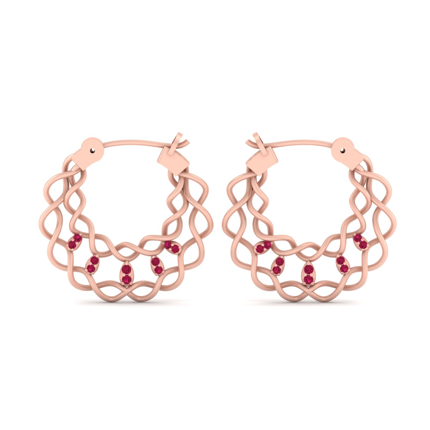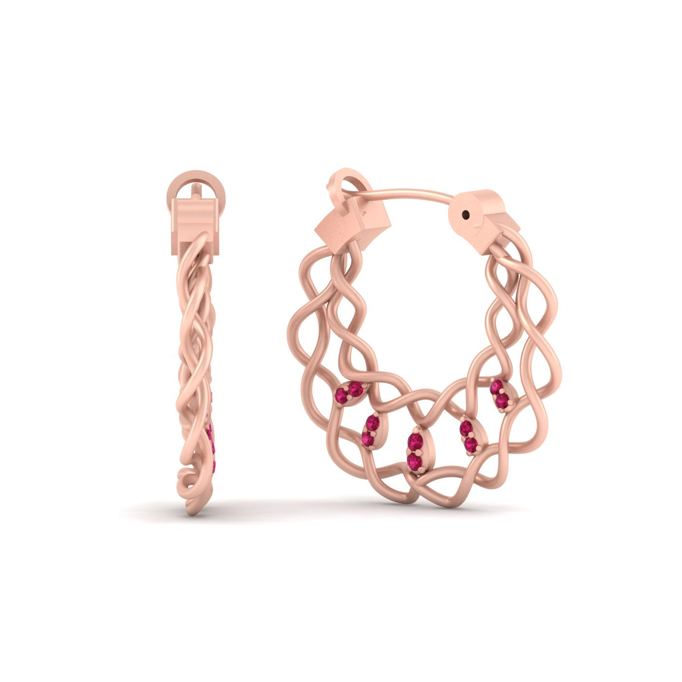Pink Diamond Entwined Earrings Rose Gold Hoop Engagement Earrings