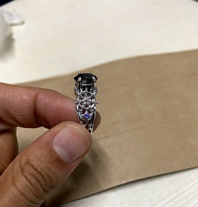 Pirate Skull Engagement Ring Steering Wheel and Skull Ring Womens