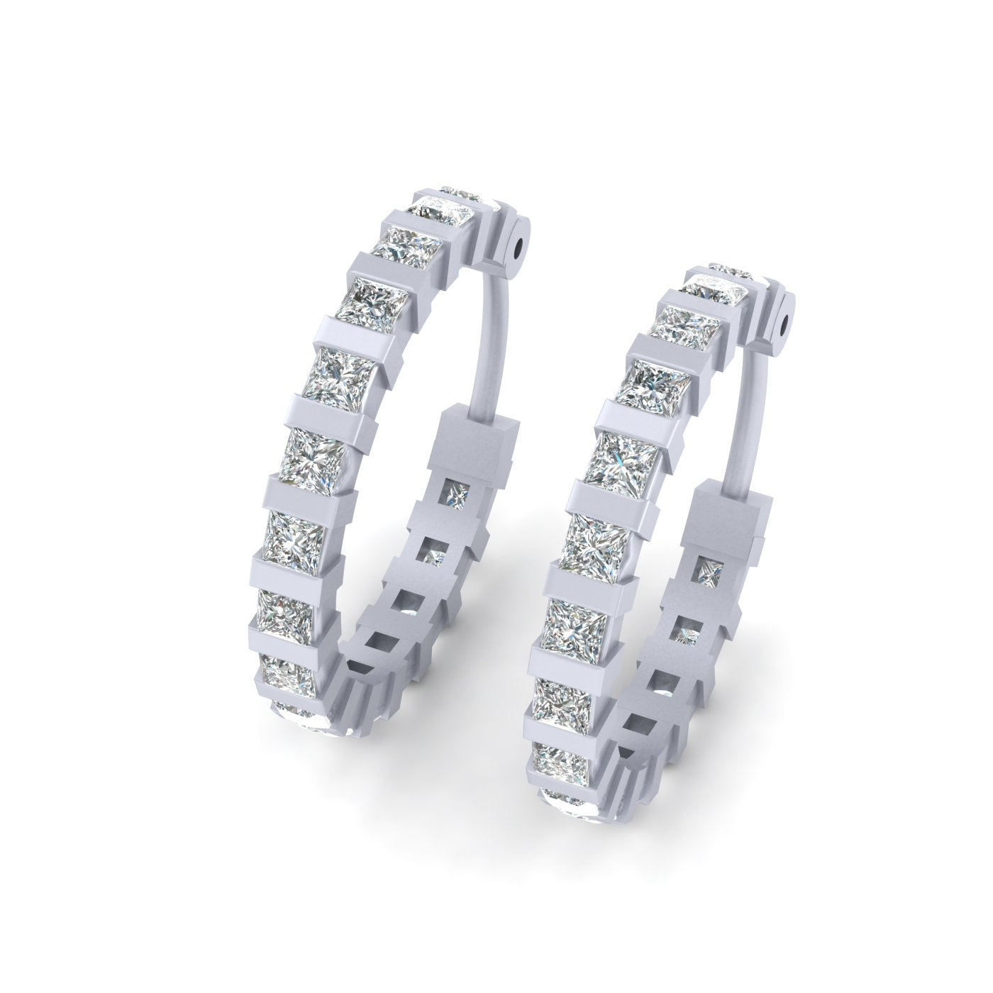 Princess Diamond Hoop Earrings Bar Set Diamond Earrings White Gold