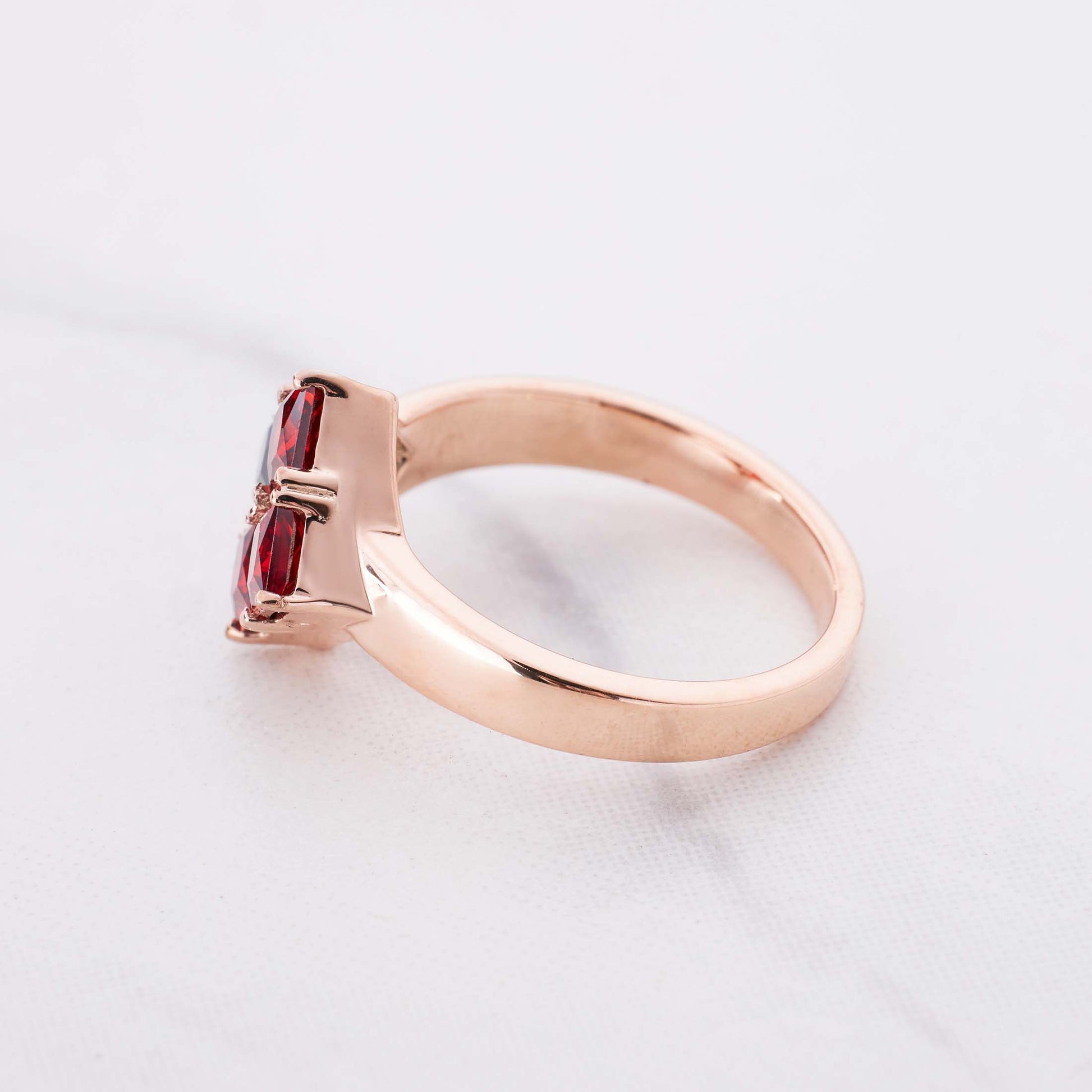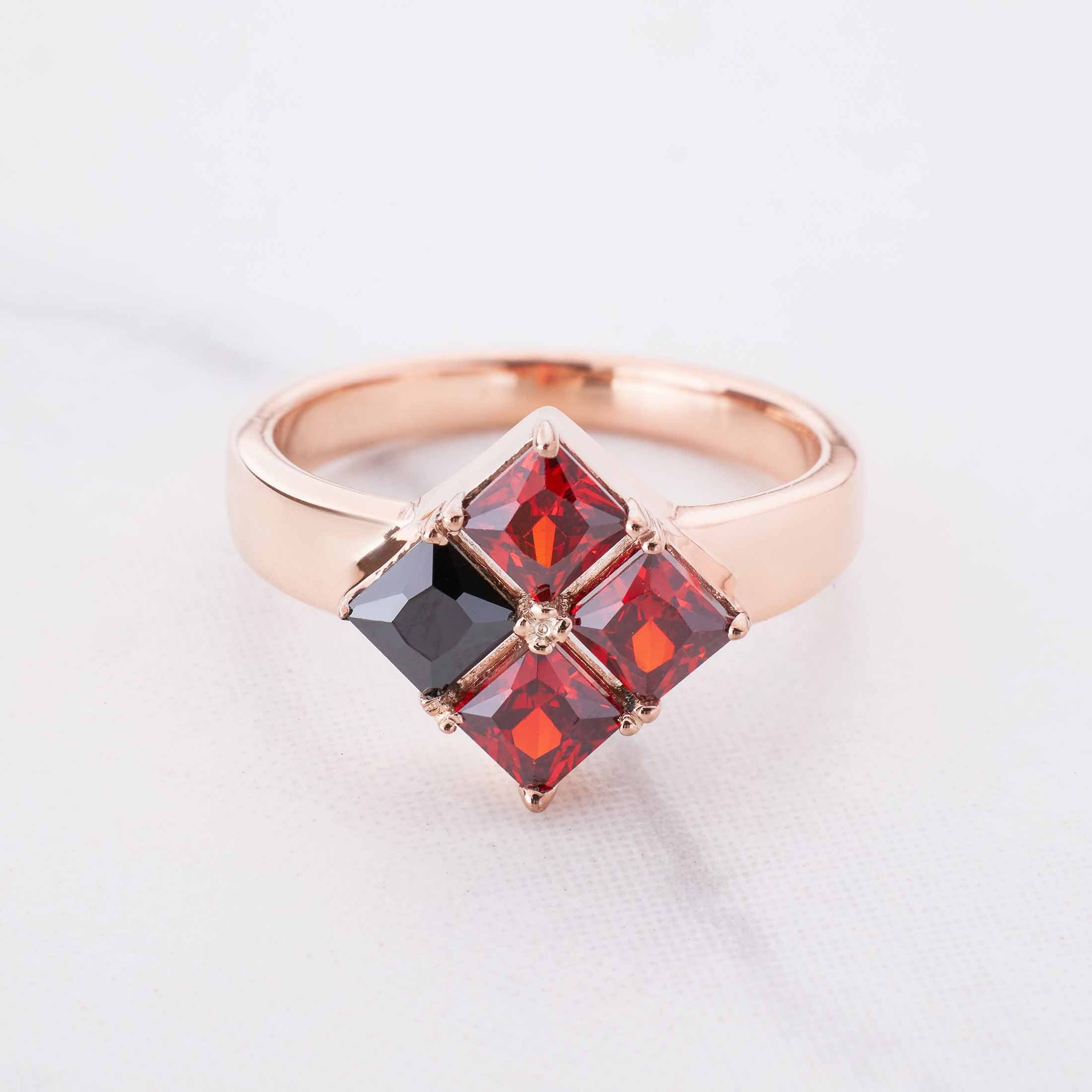 Red and Black Engagement Ring Princess Cut Gemstone Rings