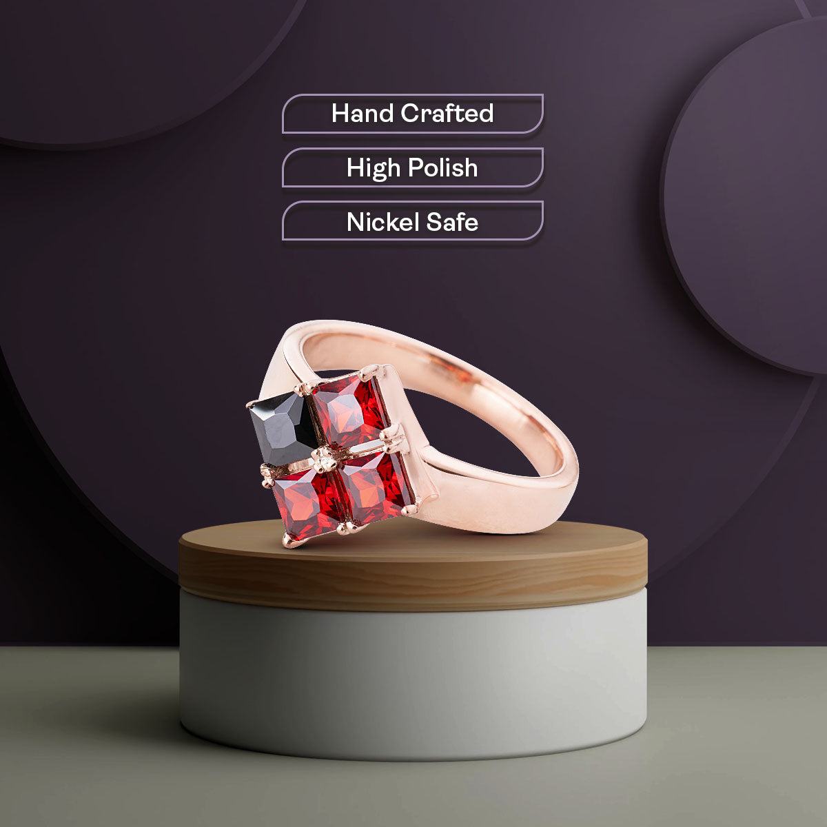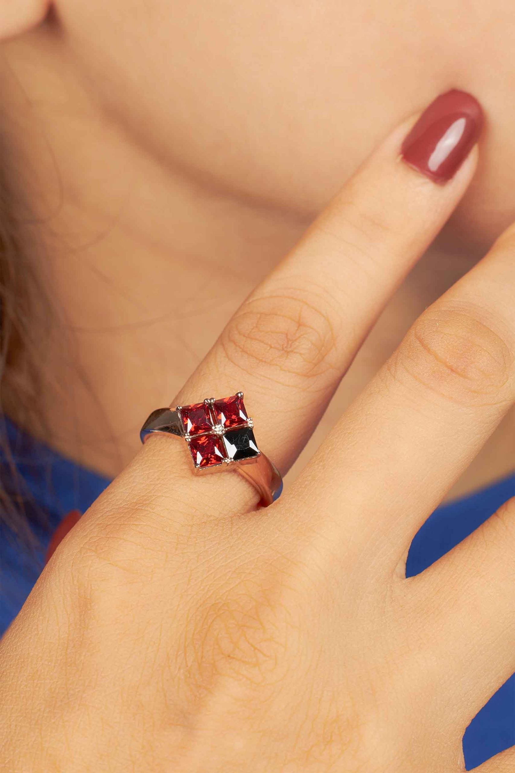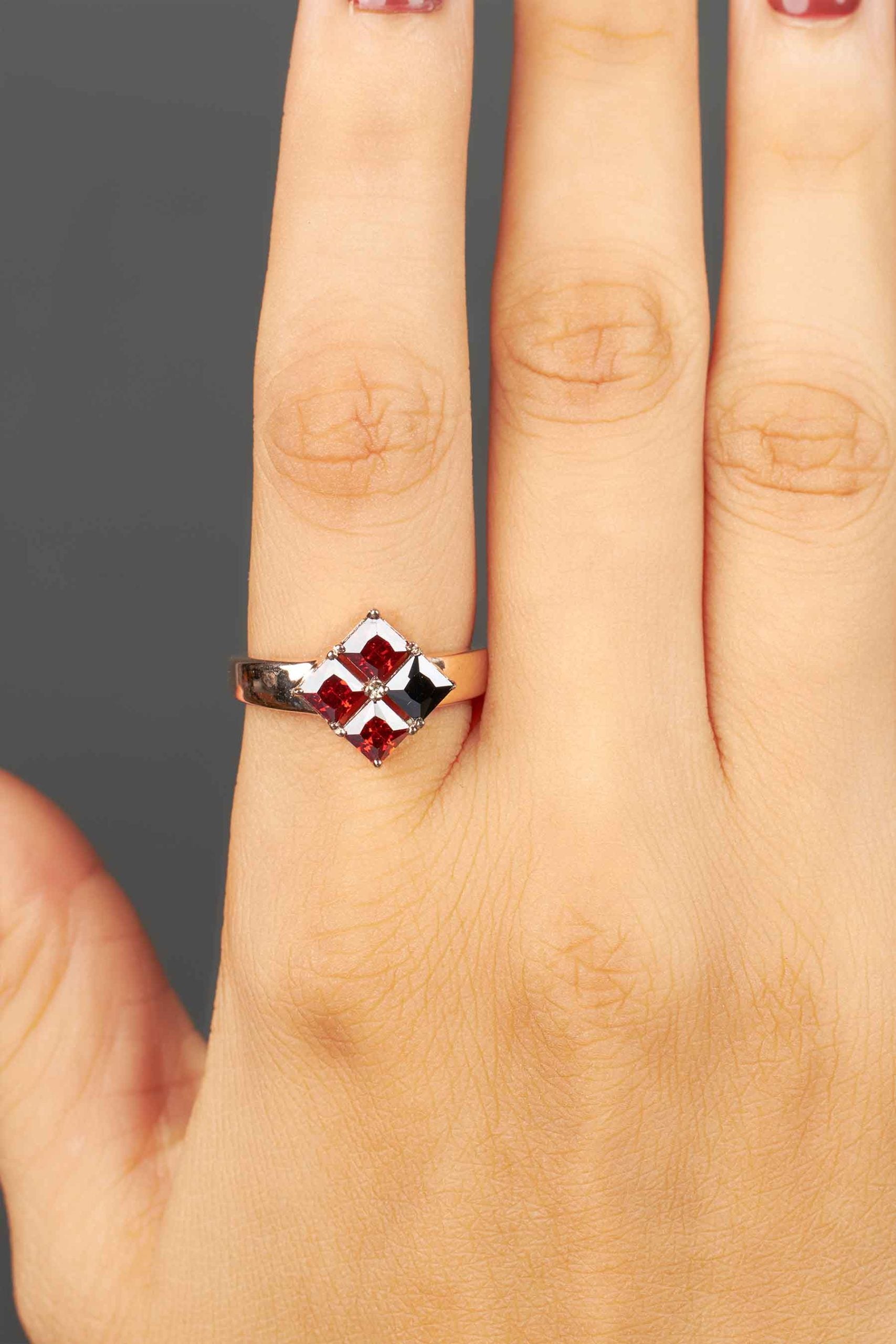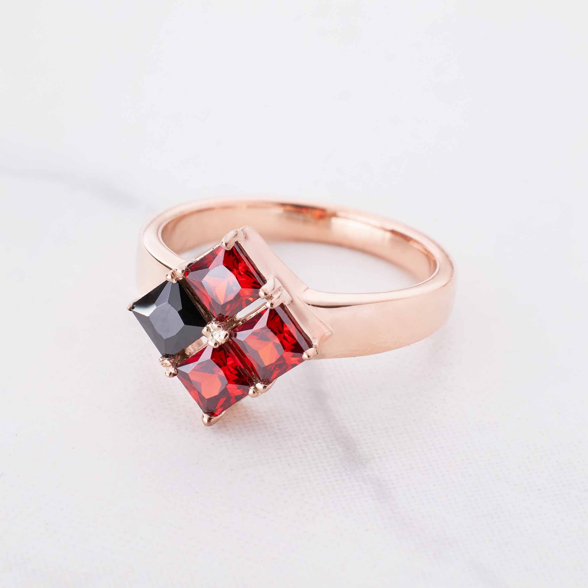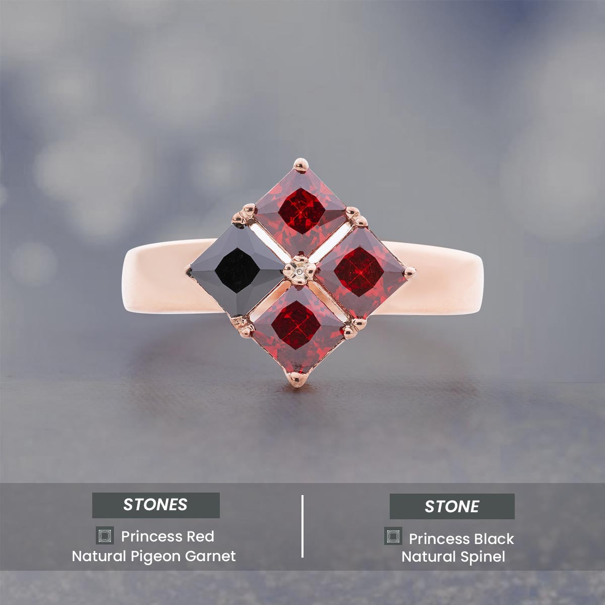 Red Garnet and Black Spinel Natural Gemstone Engagement Ring