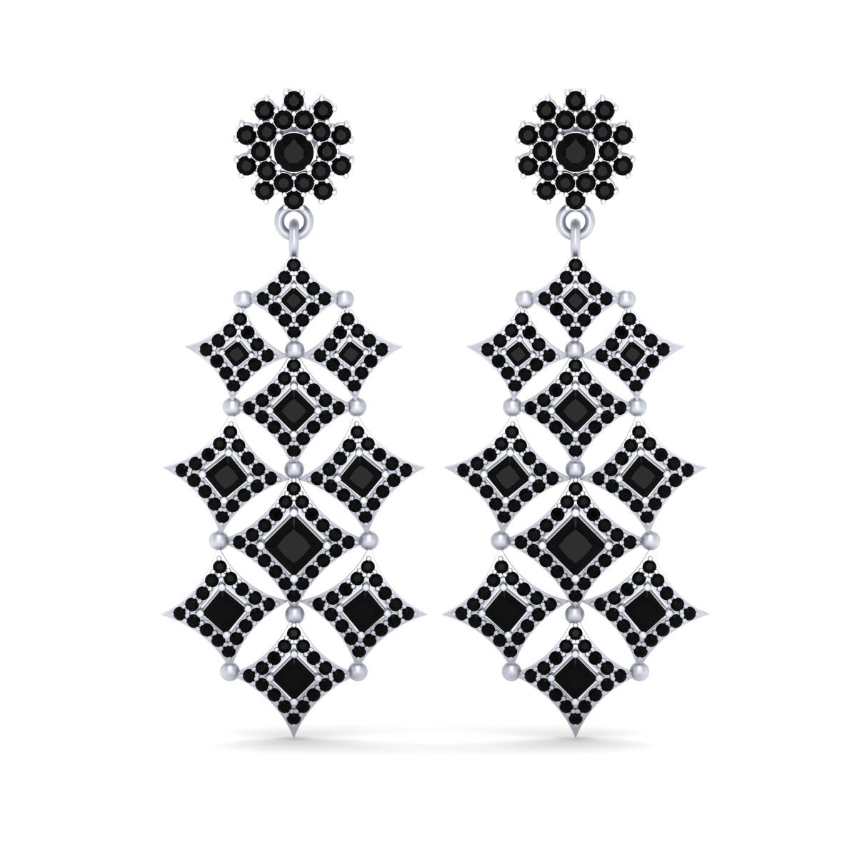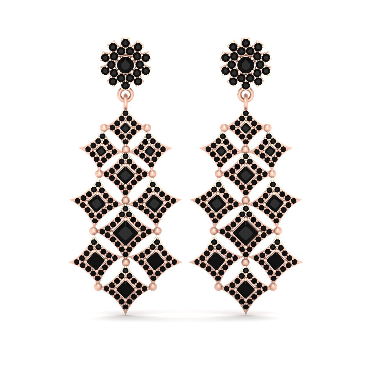 Rose Gold Chandelier Earrings Black Diamond Halo Engagement Earrings