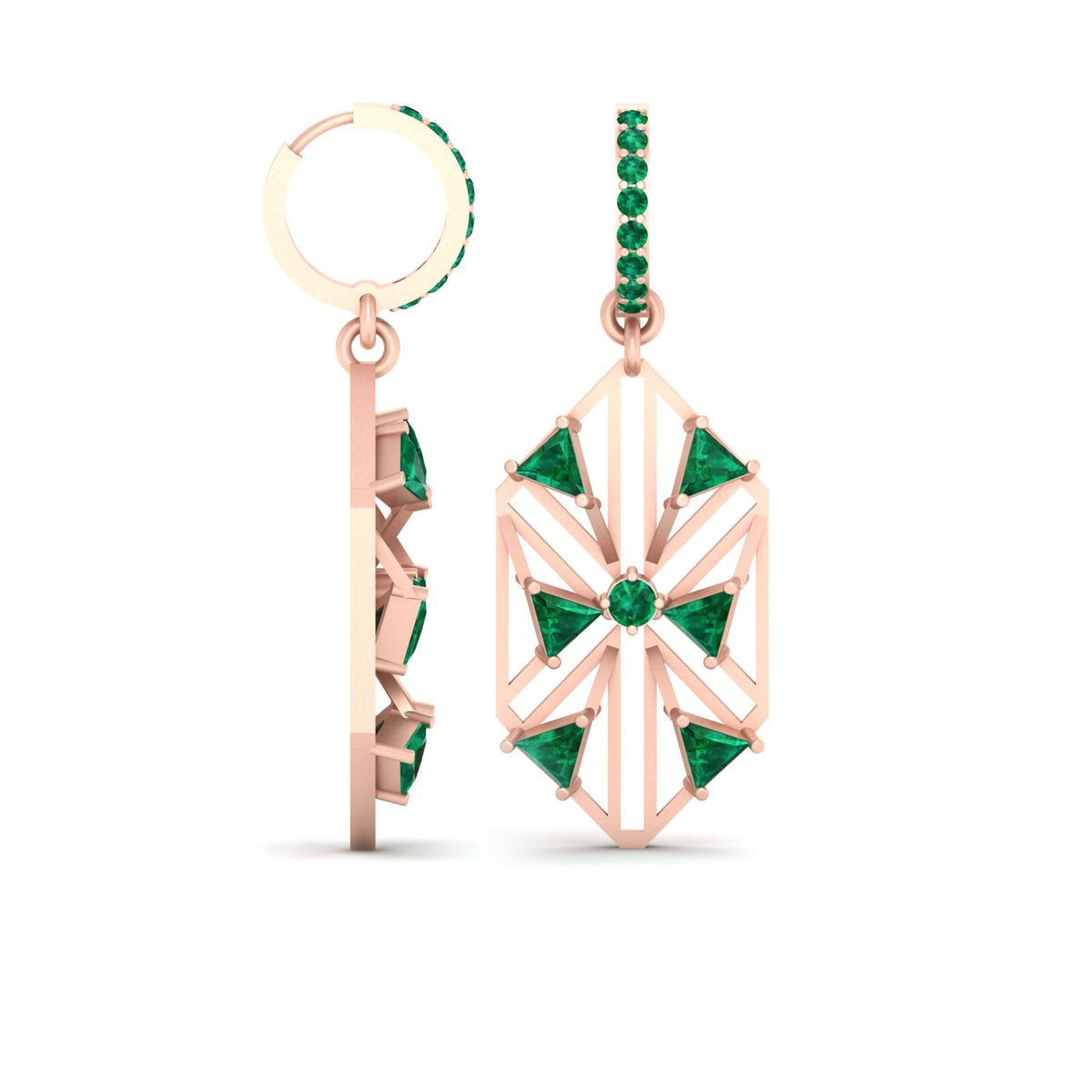 Rose Gold Hoop Earrings Green CZ Dangle Hoop Engagement Earrings