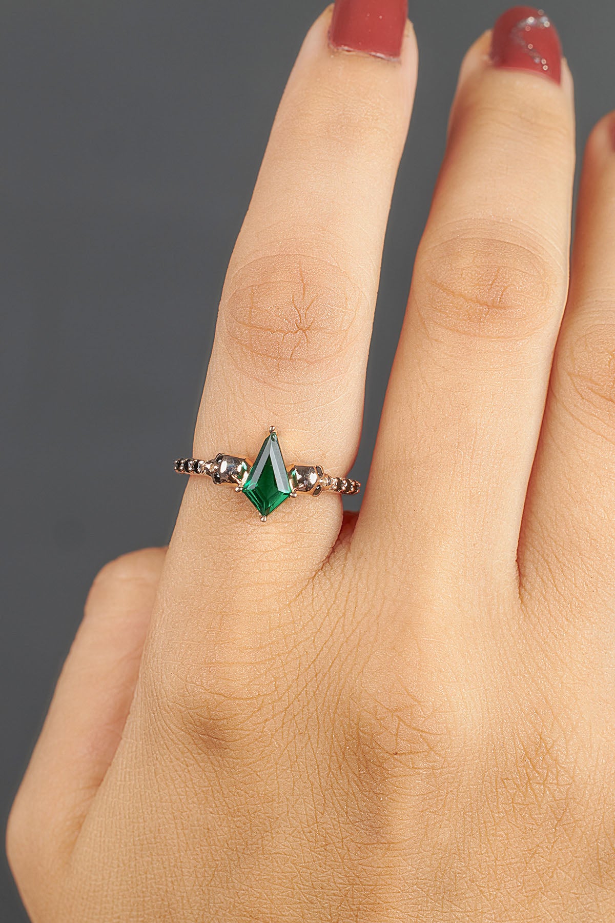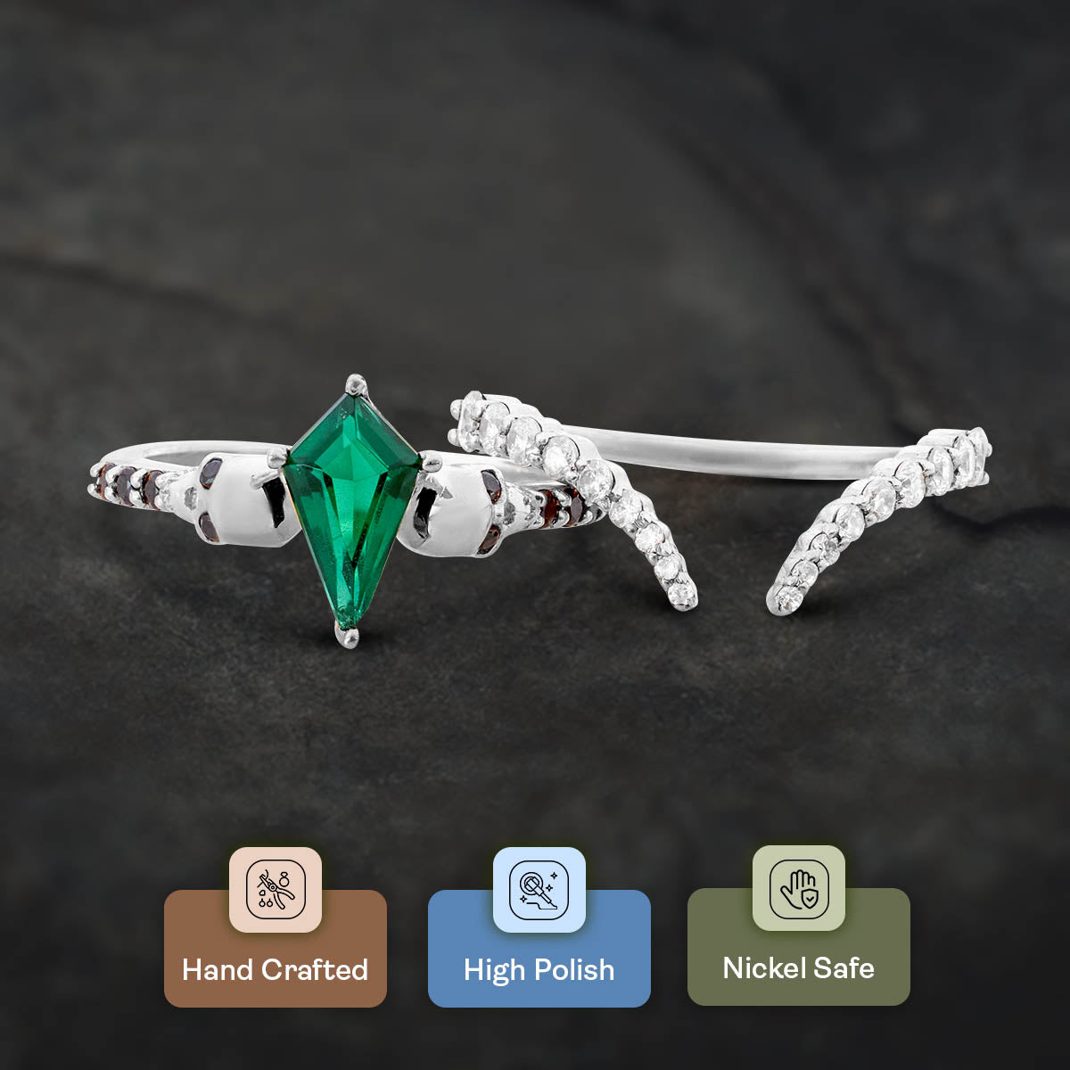 Rose Gold Skull Ring Set Kite Cut Natural Emerald Gothic Rings