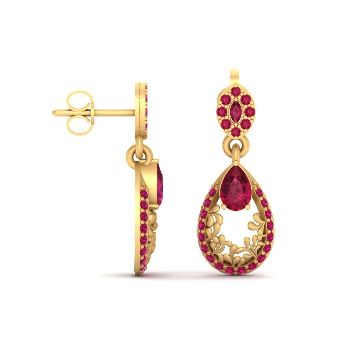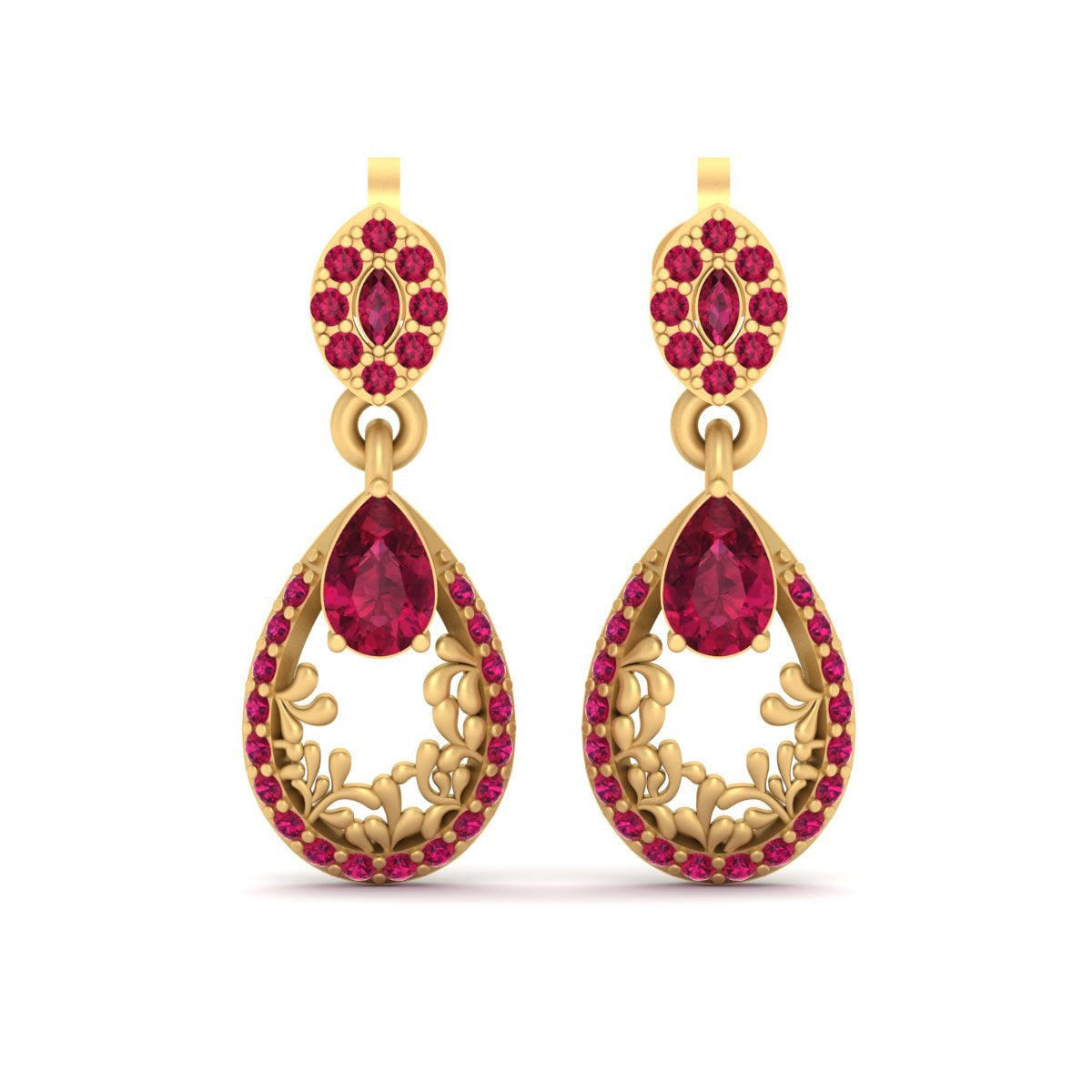 Ruby Teardrop Dangle Earrings Gold Dangle Drop Wedding Earrings