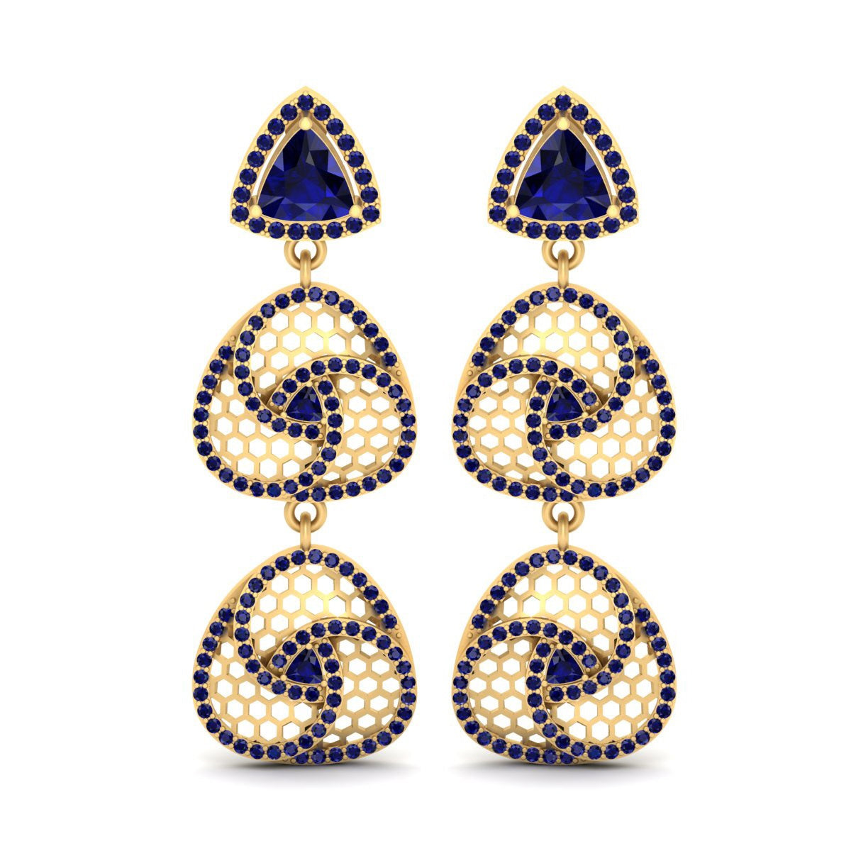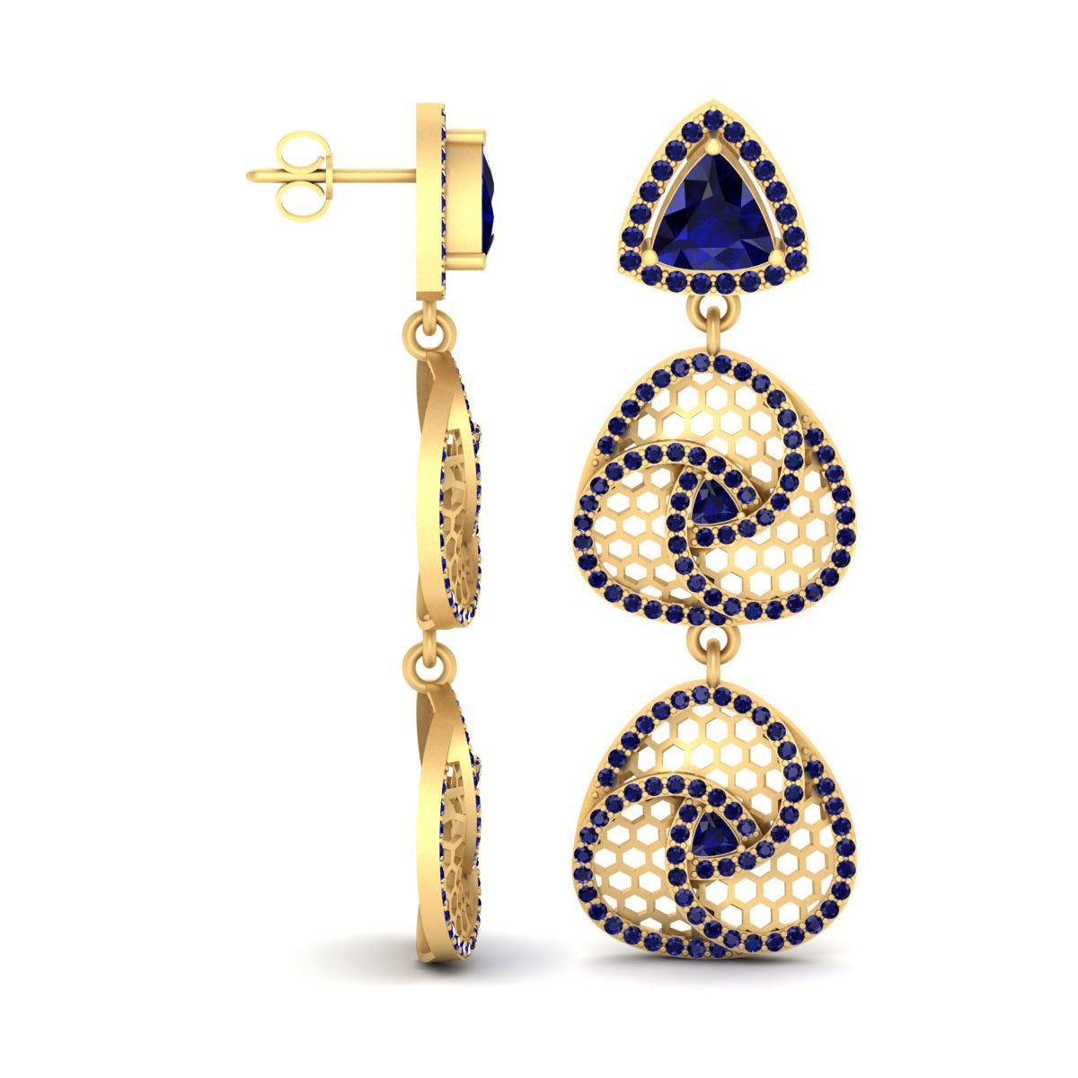Sapphire Celtic Earrings Gold Honeycomb Celtic Dangle Drop Earrings
