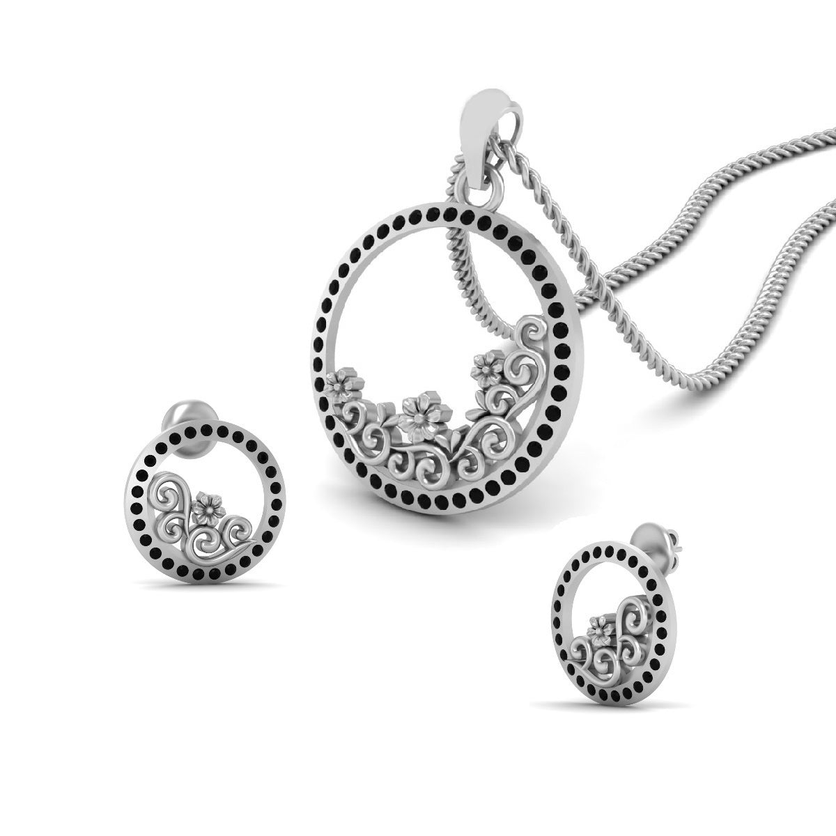 Learn moreSilver Flower Pendant Set Black Diamond Filigree Pendant Earrings Set
