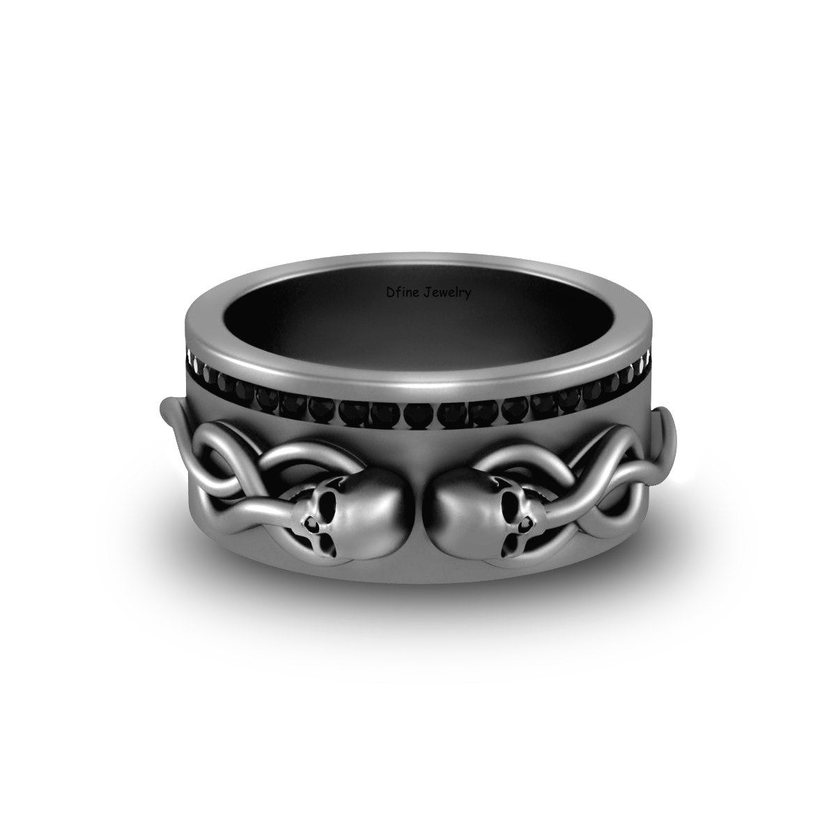 Skull and Snake Ring Mens Skull Ring Sterling Silver Gun Metal Fn