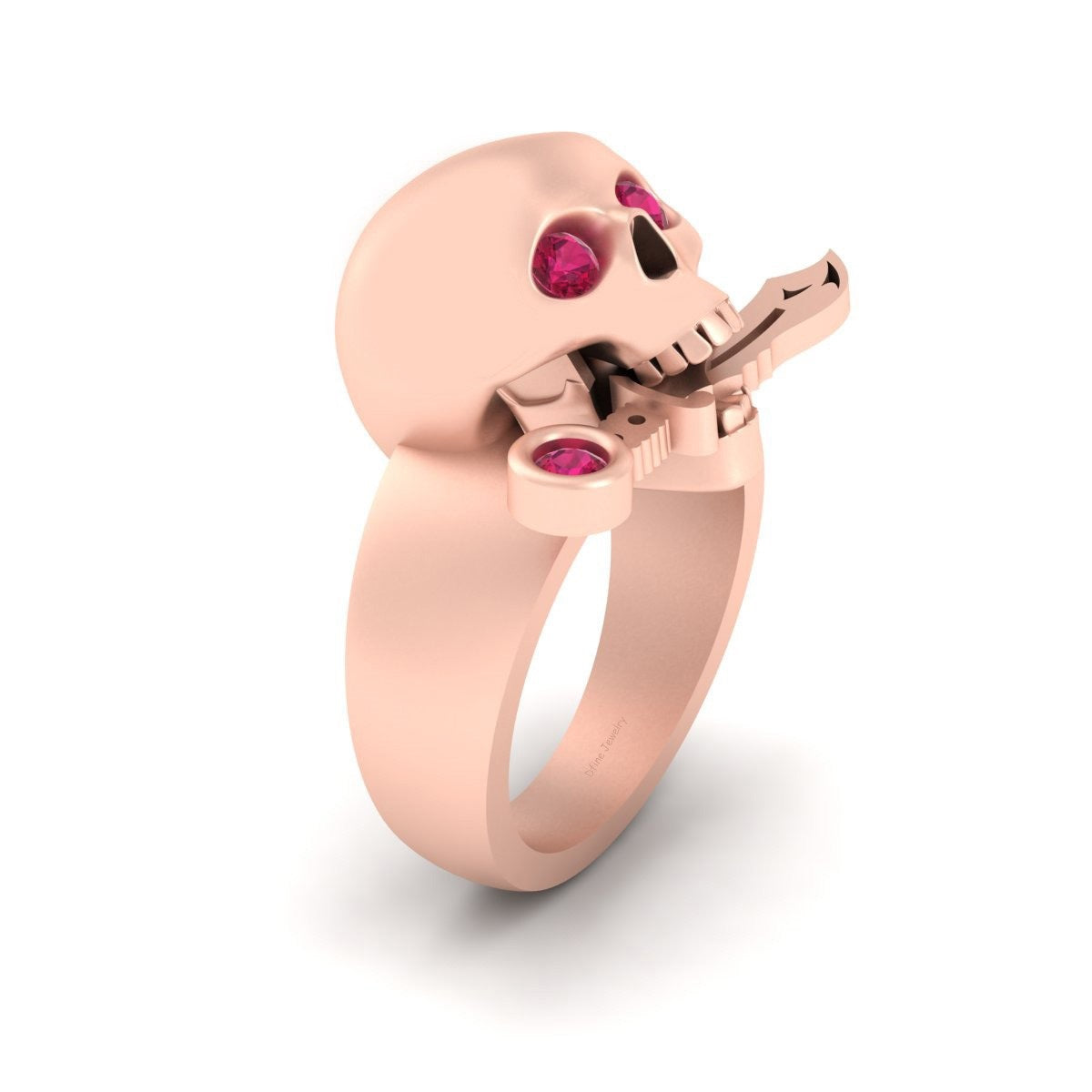 Skull Engagement Ring With Dagger Rose Gold Skull Ring Women