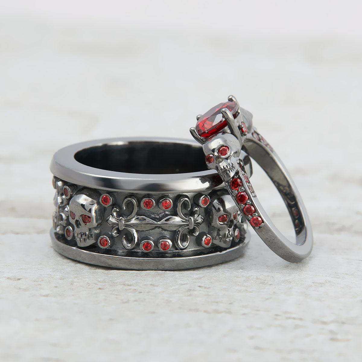 Skull Engagement Rings Set His Her Gothic Matching Couple Ring