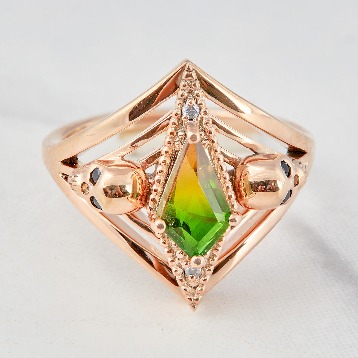Skull Kite Shaped Engagement Ring Doublet Stone Gothic Rings