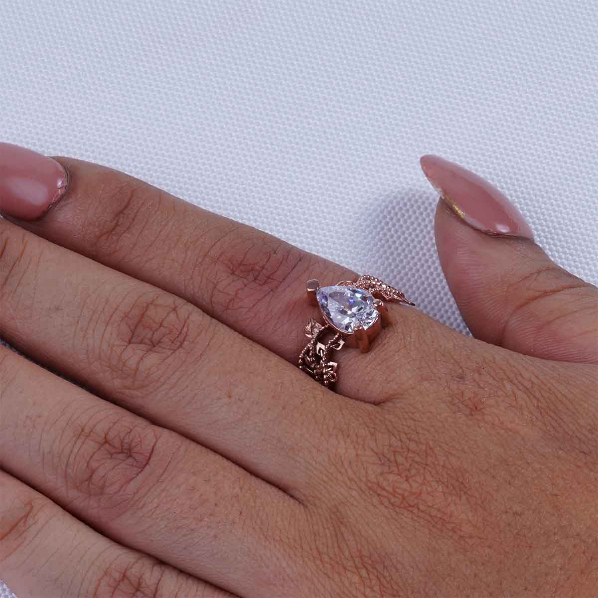 Teardrop Diamond Art Deco Ring Floral Vintage Engagement Rings