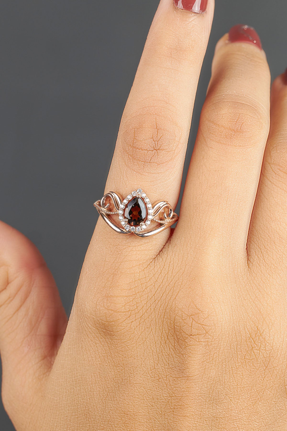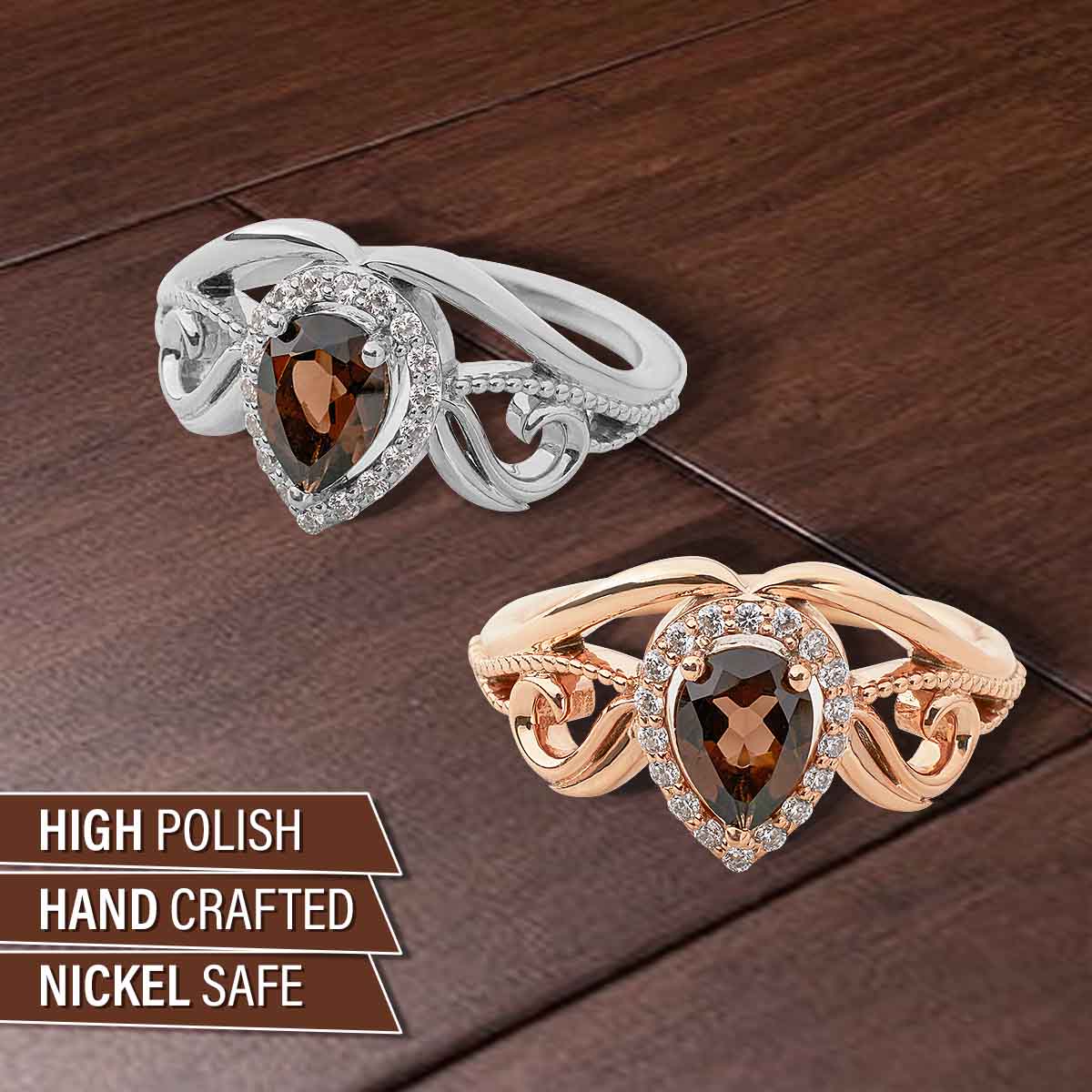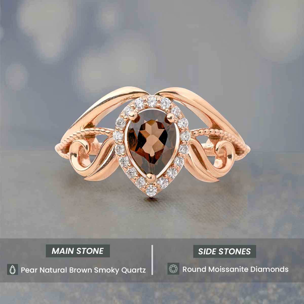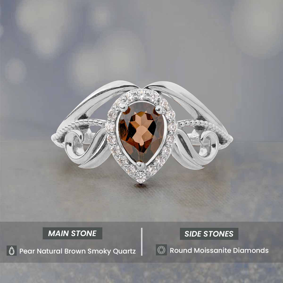 Learn moreTeardrop Smoky Quartz Engagement Ring Vintage Wedding Rings