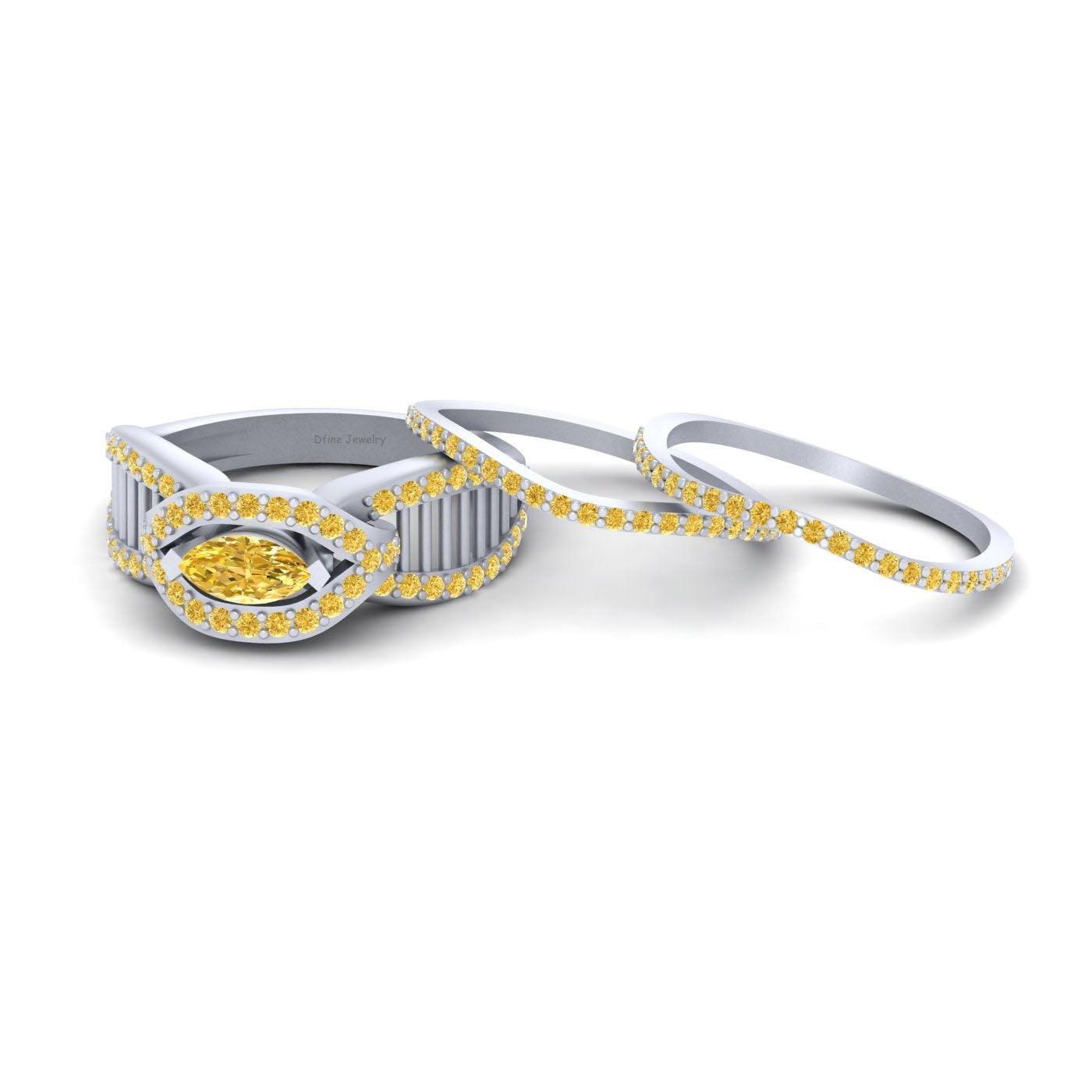 Unique Mesh Halo Engagement Rings Yellow Topaz Bridal Wedding Sets