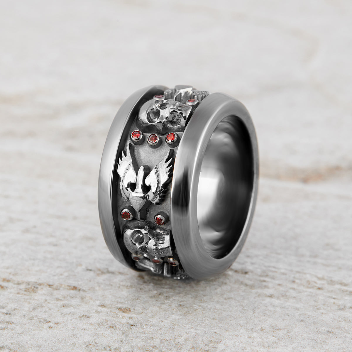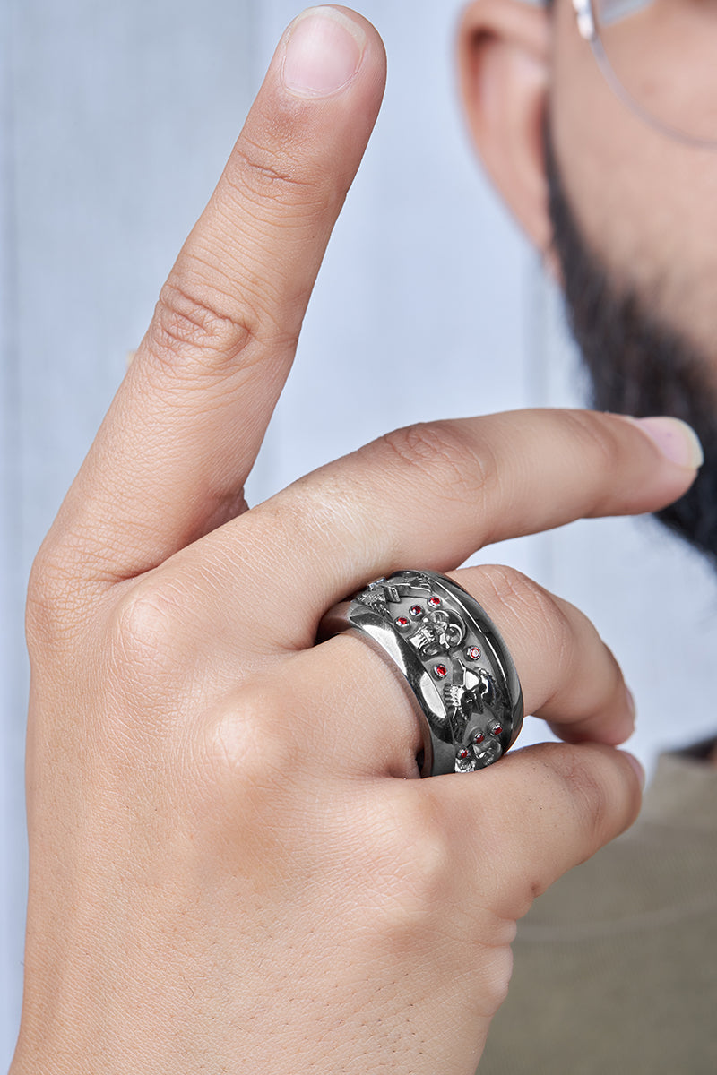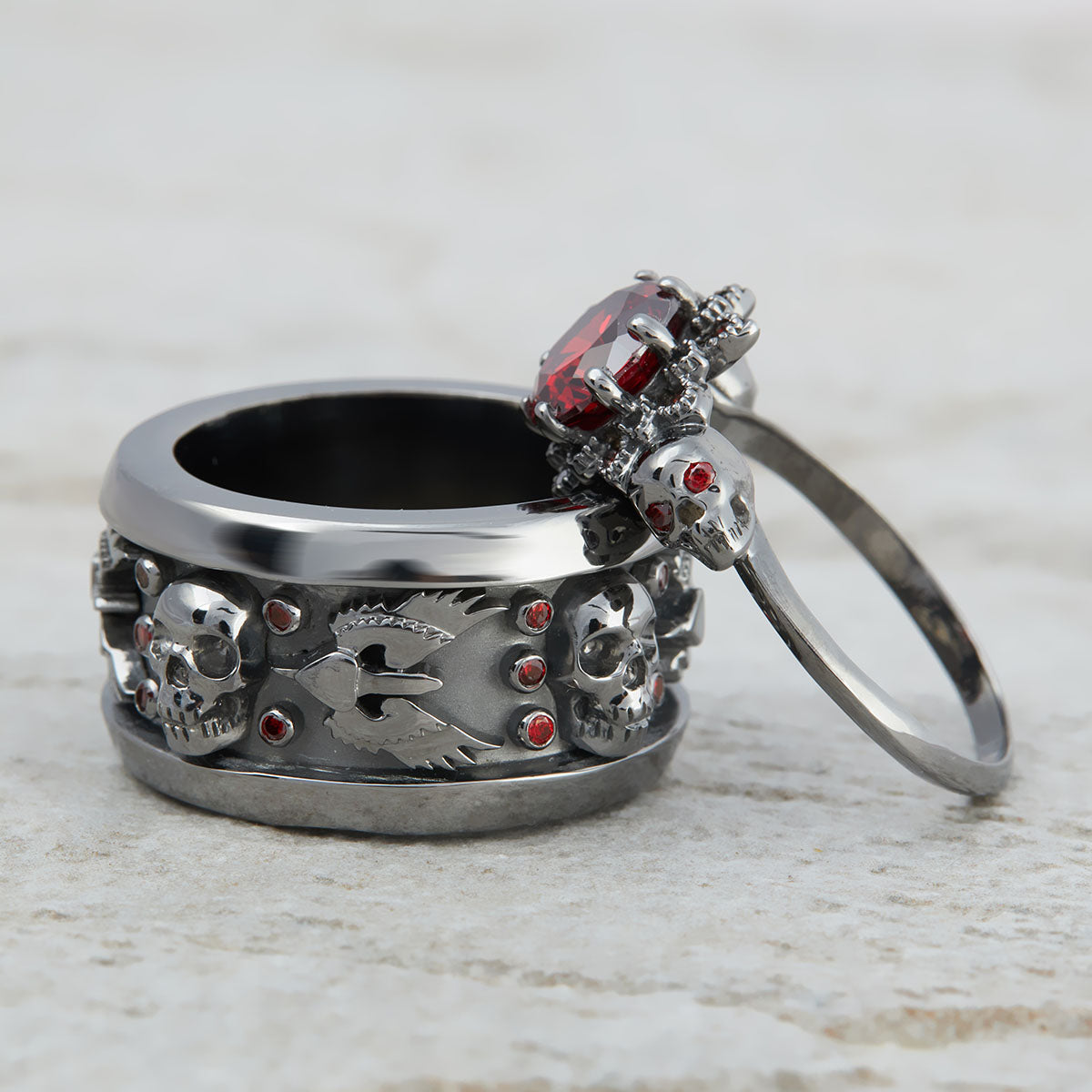 Vampire Gothic Engagement Rings His Her Skull Ring Set Silver