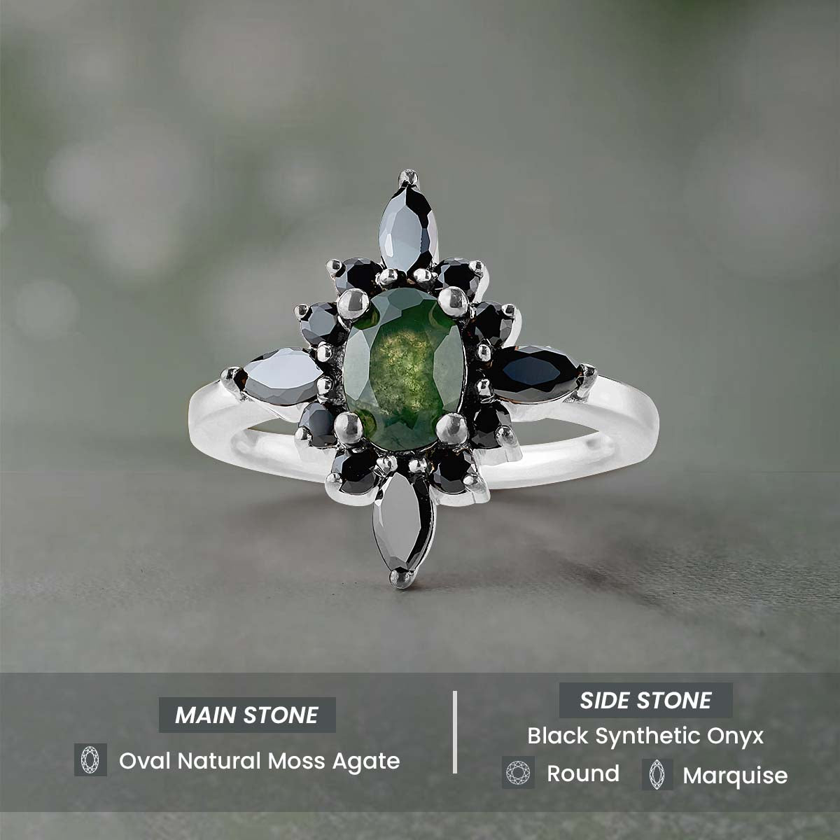 Absolutely in love with this ring! The moss agate is so unique, with its deep green patterns that contrast beautifully with the sleek black onyx. It's got a vintage vibe that feels timeless and so much more personal than a traditional ring.