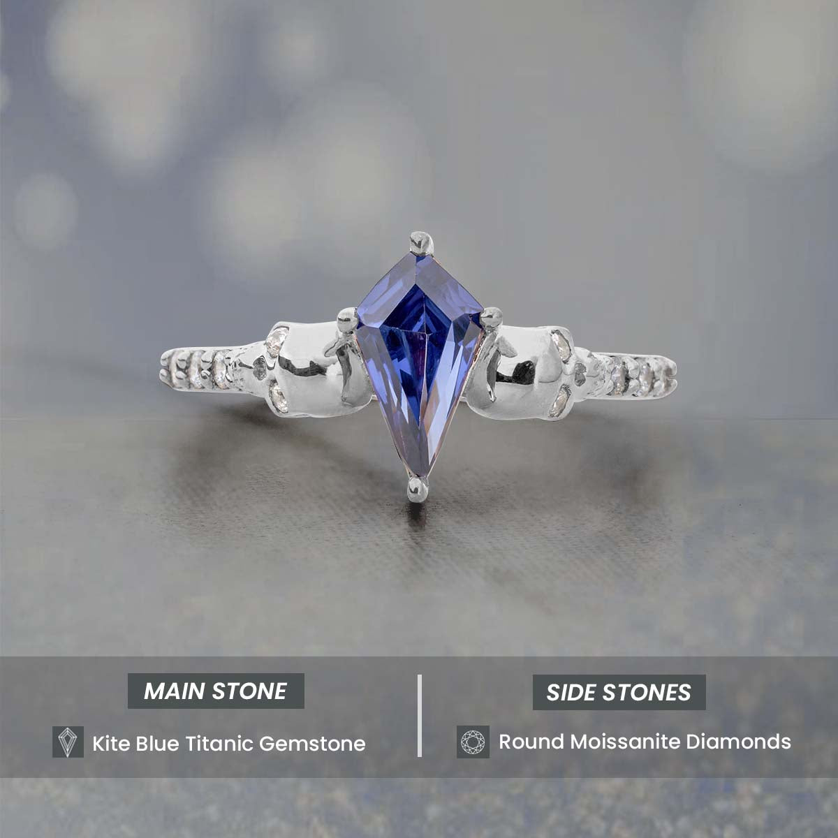 Women's Skull Ring Kite Cut Gemstone Gothic Engagement Rings