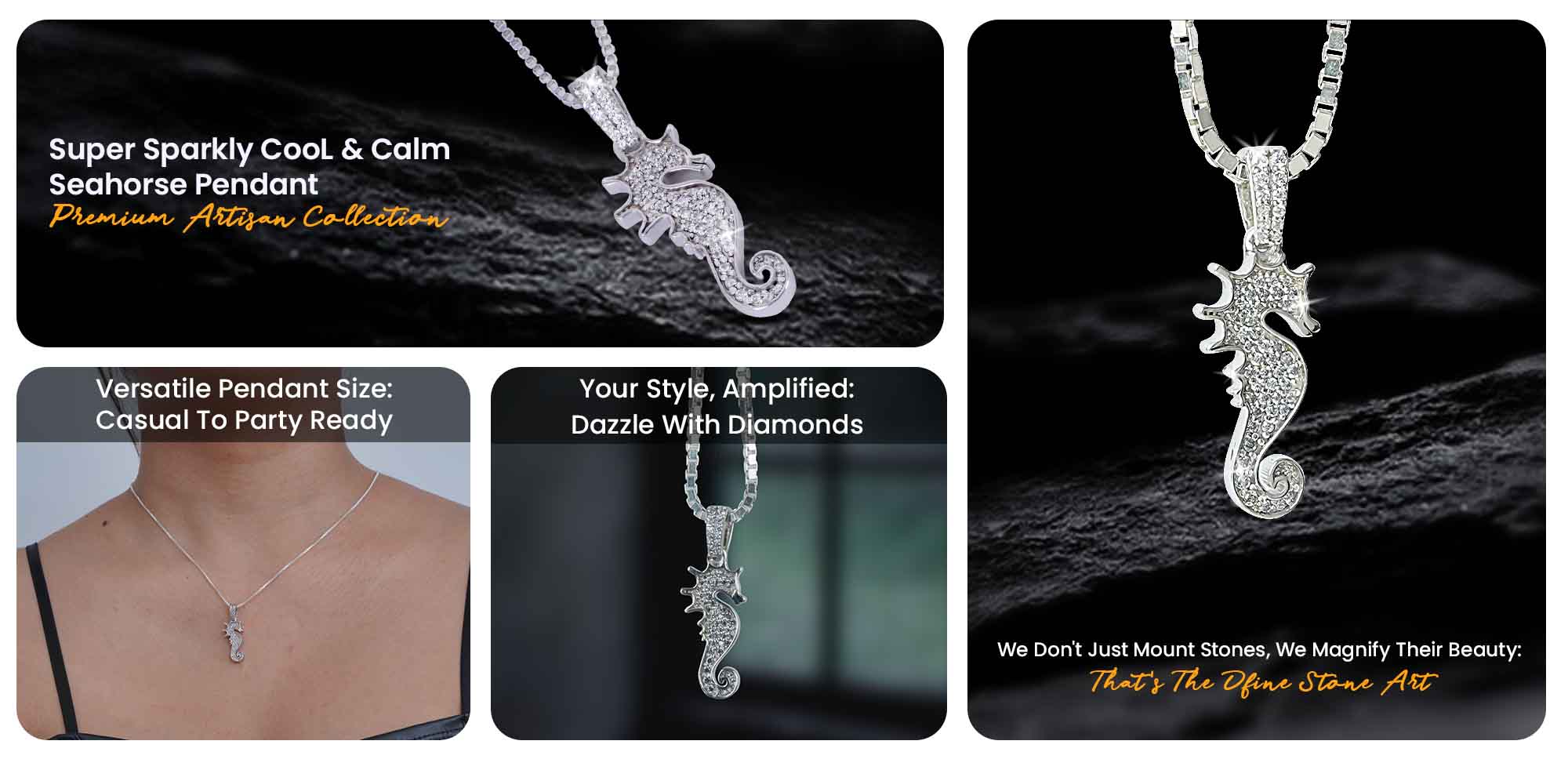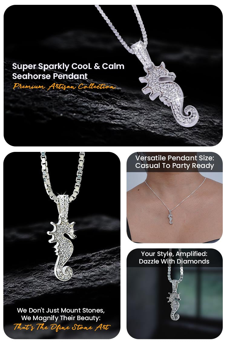 Learn moreMoissanite Seahorse Pendant Necklace Iced Out Ocean Jewelry