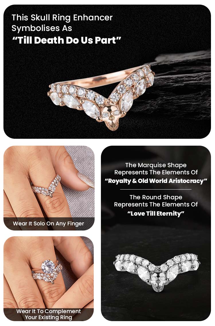 Learn moreMoissanite Skull Ring Enhancer Curved Engagement Wedding Band Women Rose Gold
