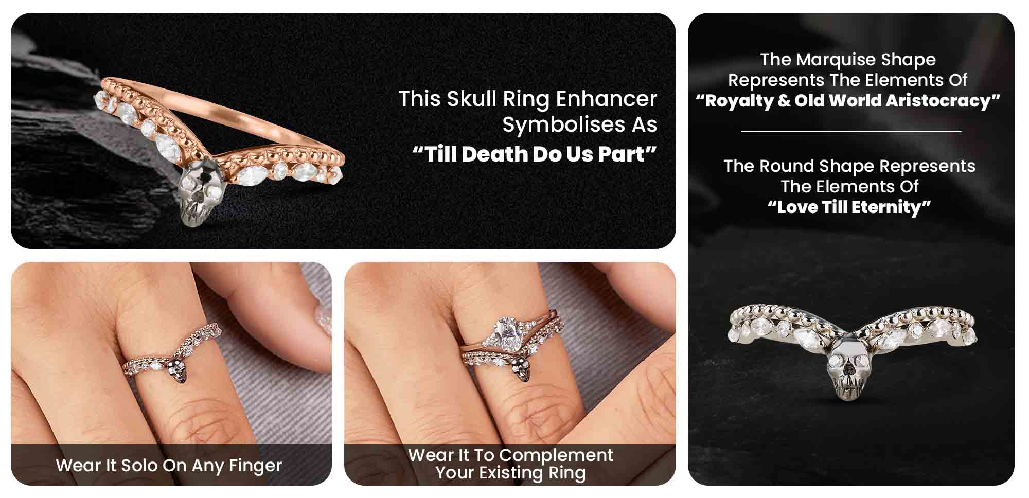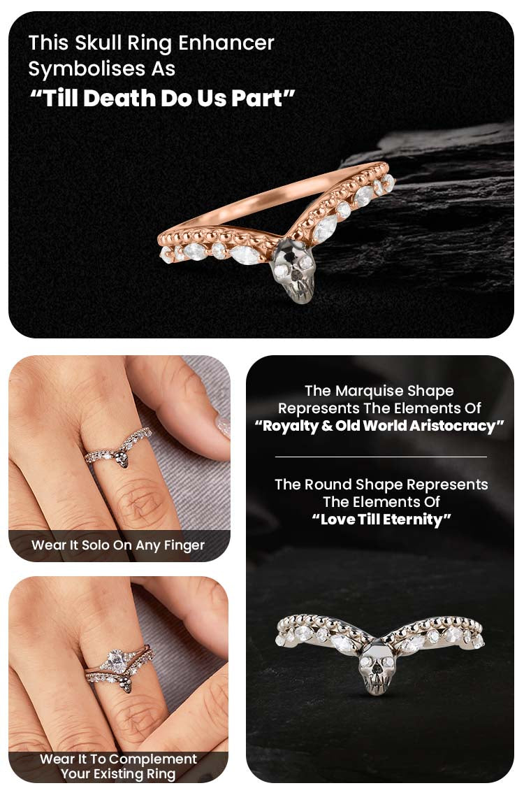 Two Tone Skull Engagement Ring Enhancer for Women Marquise CZ