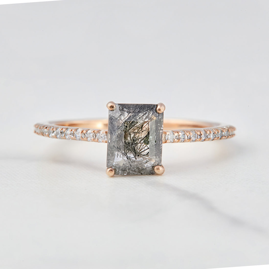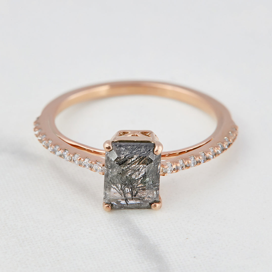 1.0CT Black Rutilated Quartz Ring Rose Gold Engagement Ring