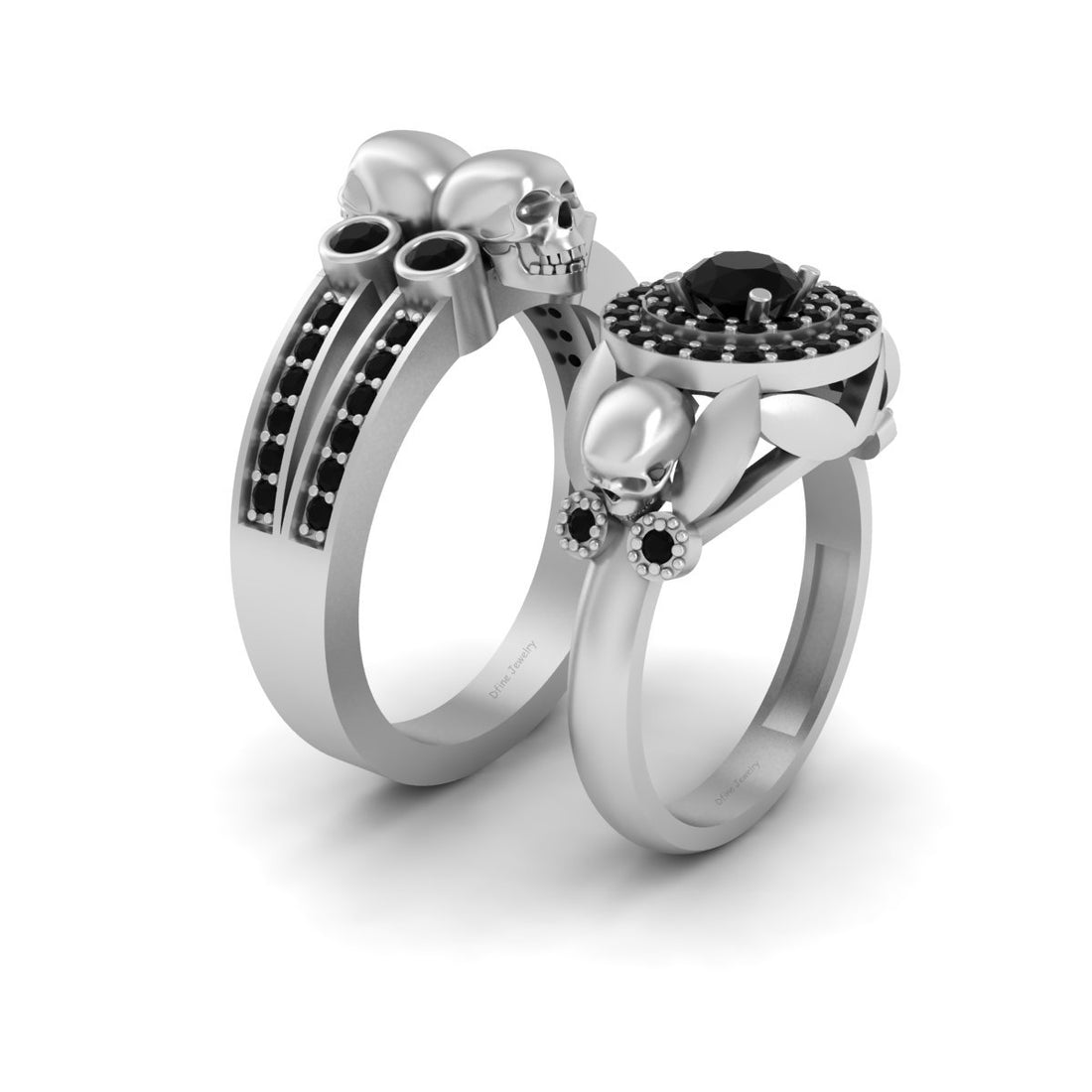 1.25tcw Onyx Skull Engagement Rings His and Her Skull Ring Set