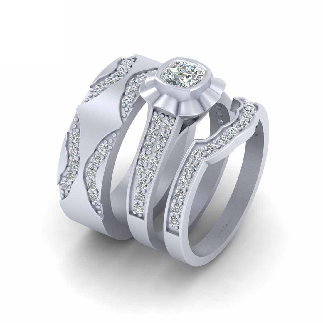 SPECIFICATION Cushion and Round Approx 1.20TCW White Simulated Diamond Wedding Ring Set His And Hers,...