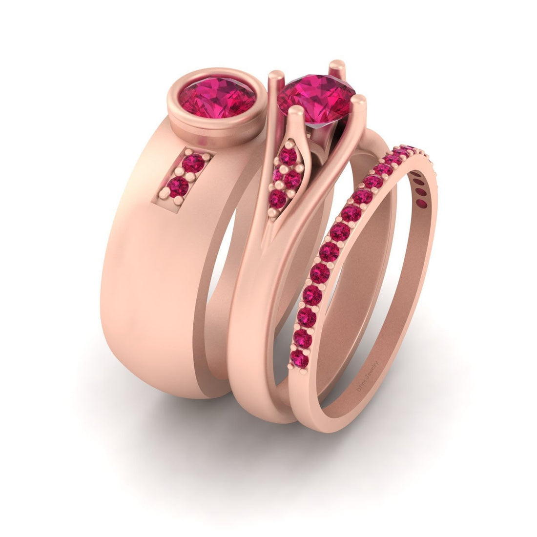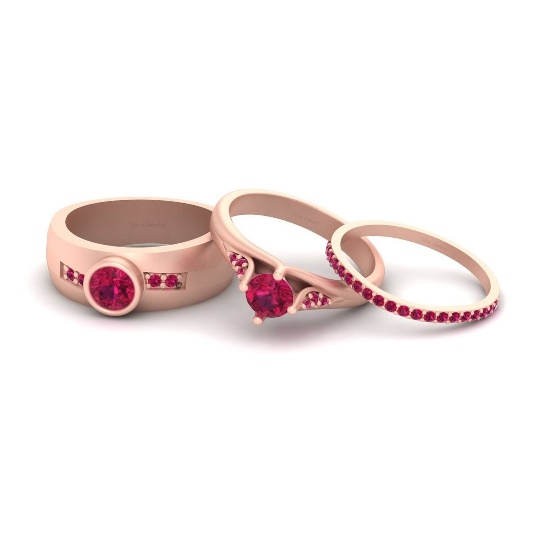 SPECIFICATION Round Approx 1.25TCW Pink Synthetic Ruby Gemstones Wedding Ring Set His And Hers, Matching...