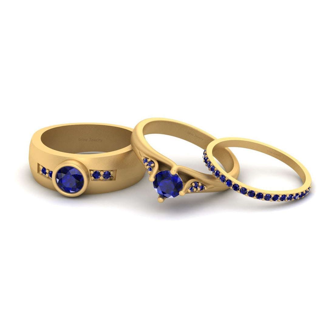 1.10TCW Sapphire Engagement Ring Set His Her Trio Rose Gold
