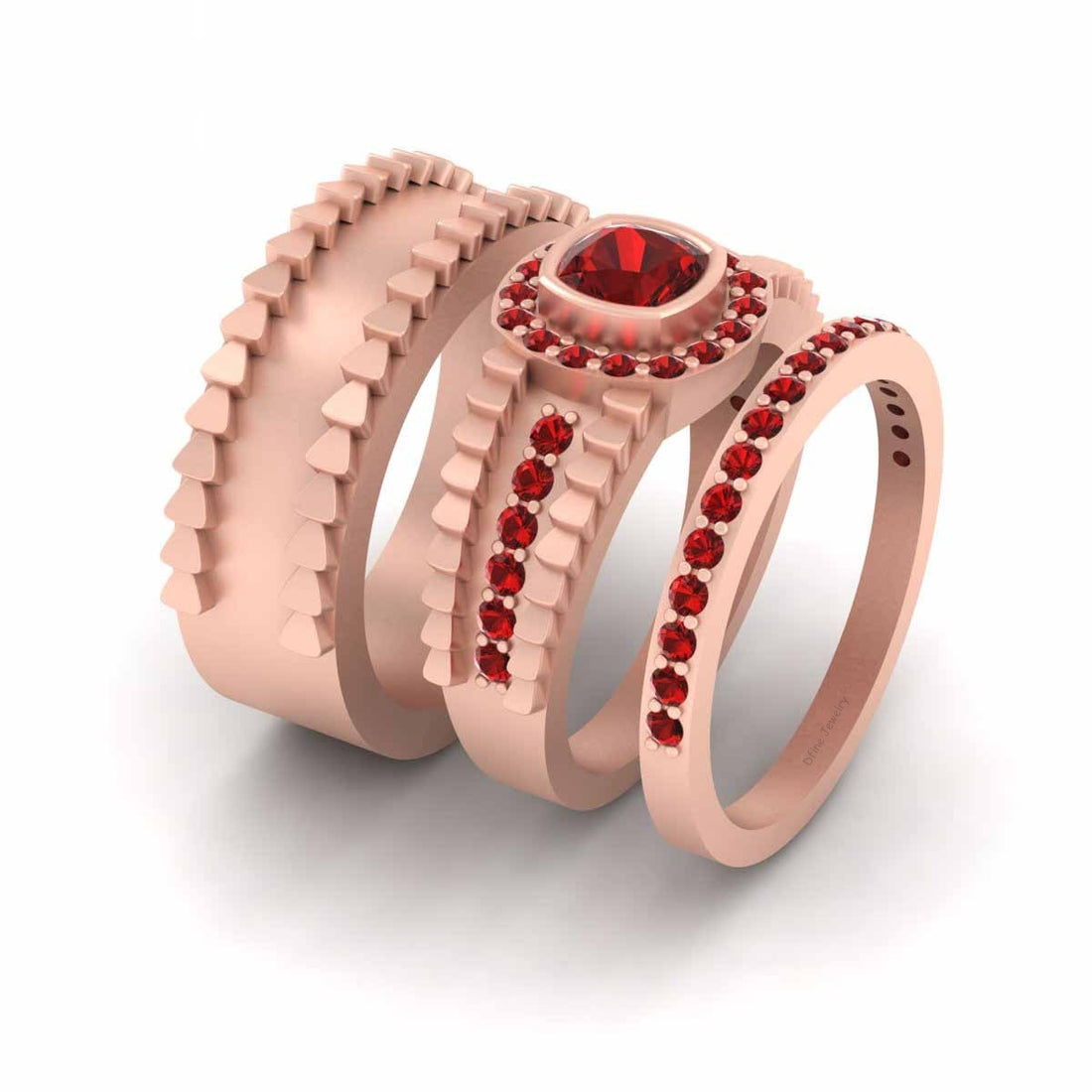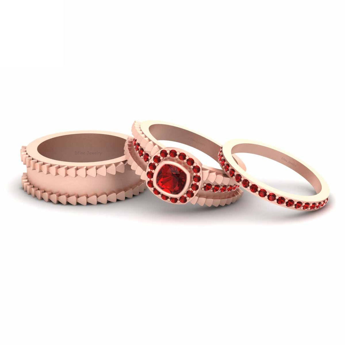 SPECIFICATION Cushion and Round Approx 1.25TCW Red Synthetic Garnet Gemstones Wedding Ring Set His And...