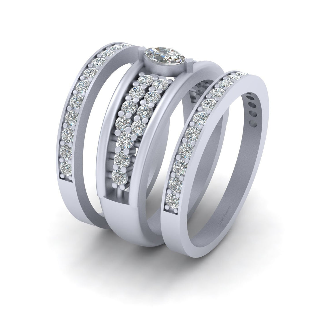 SPECIFICATION Oval and Round Cut Approx 0.90TCW White Simulated Diamond Engagement Rings For Women, Three...