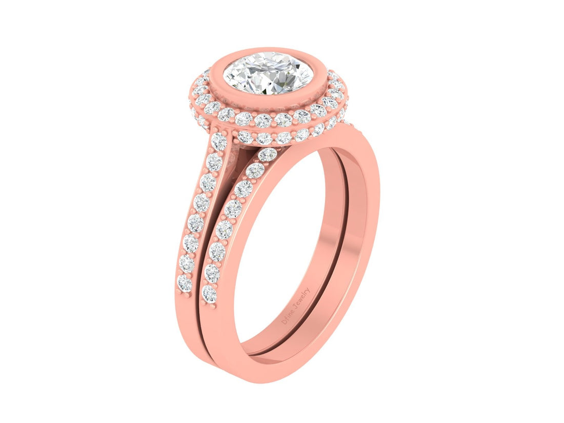 1.05ct White Moissanite Ring Set Halo Engagement Ring Band Set For Women | White Gold, Rose Gold and Yellow Gold