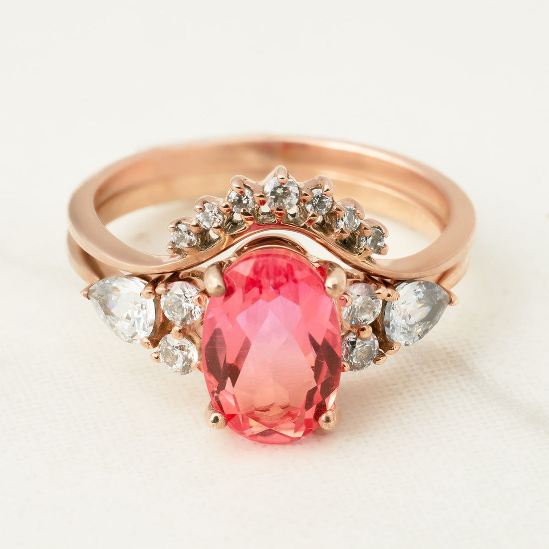SPECIFICATION One-of-a-Kind Engagement Ring for Women, Center Oval Cut 1.10CT Lab Created Pinkish Orange Doublet...