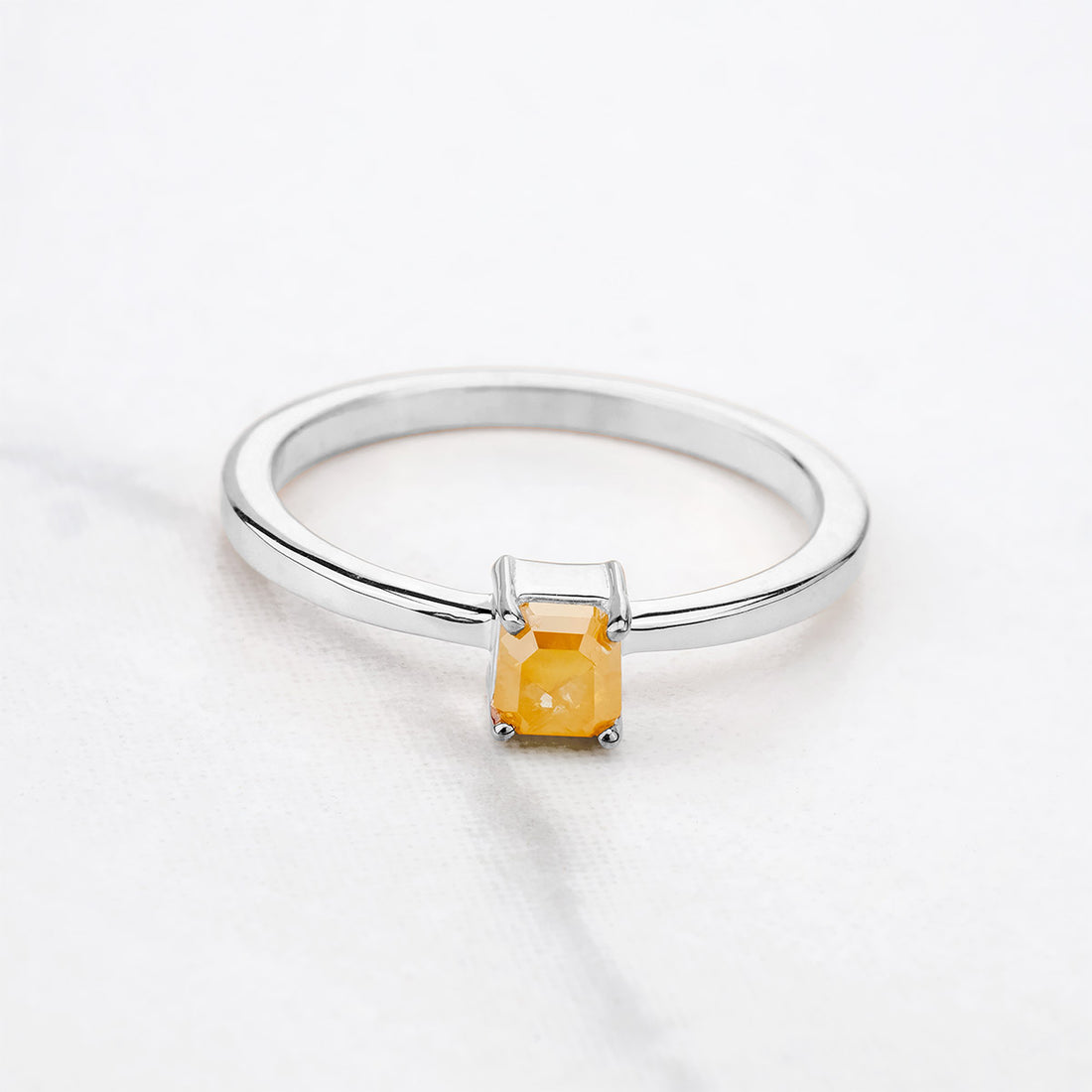 SPECIFICATION Rustic Diamond Solitaire Engagement Ring for Women, Approx 0.45CT Square Emerald Cut Yellow Fancy...