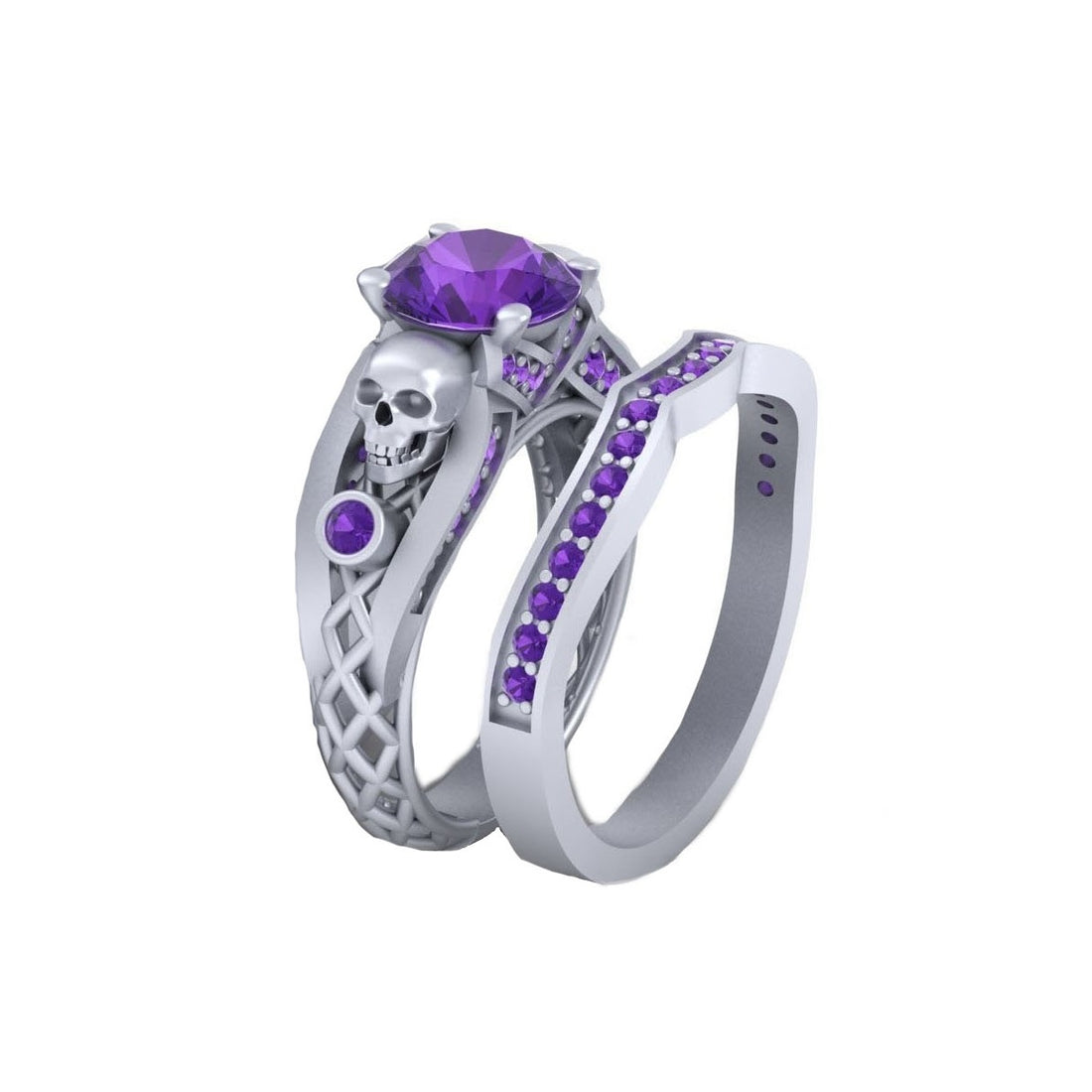 Amethyst Celtic Skull Engagement Ring Gothic Jewelry White Gold