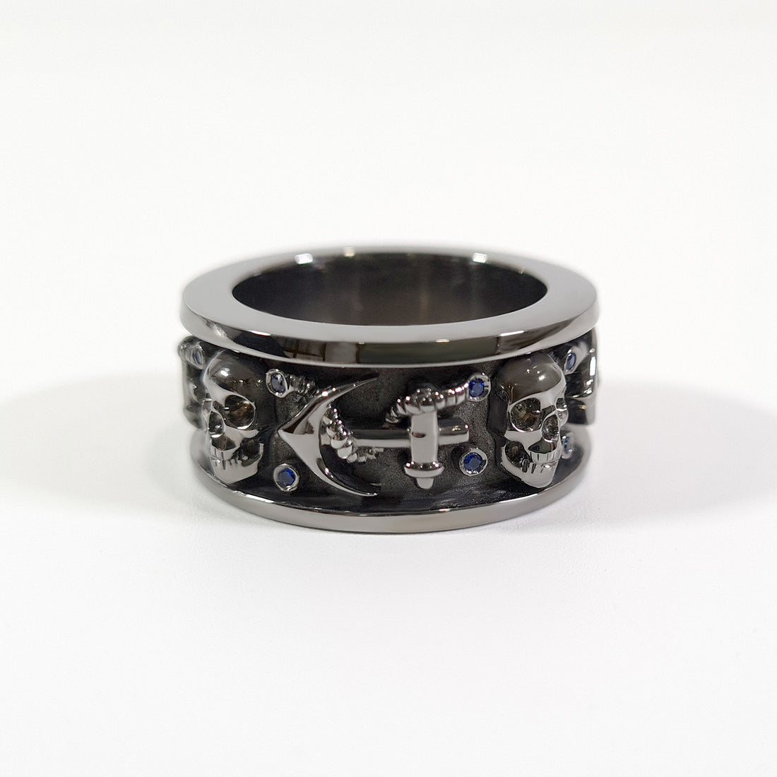 Anchor Skull Band For Men Blue Sapphire Gothic Skull Wedding Band