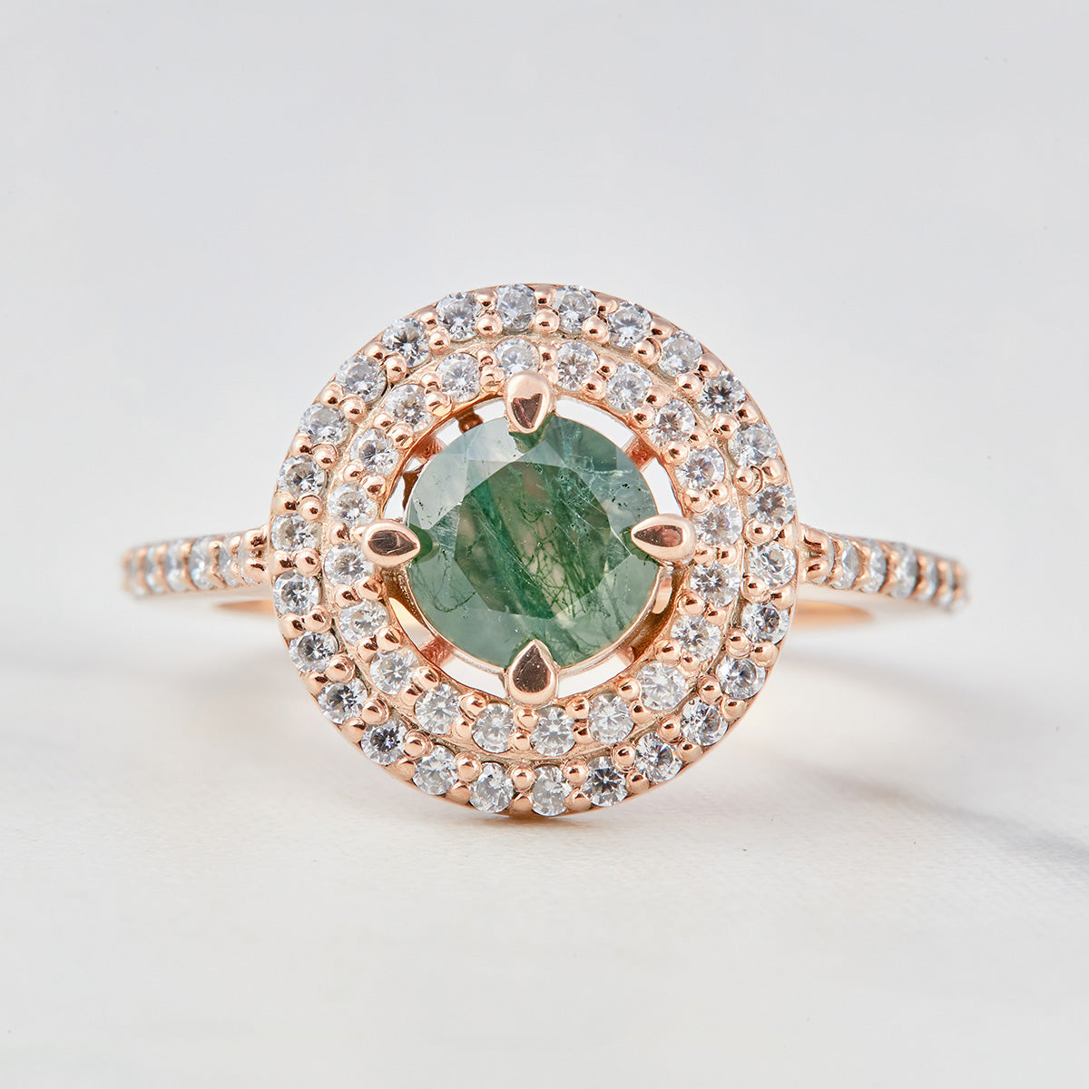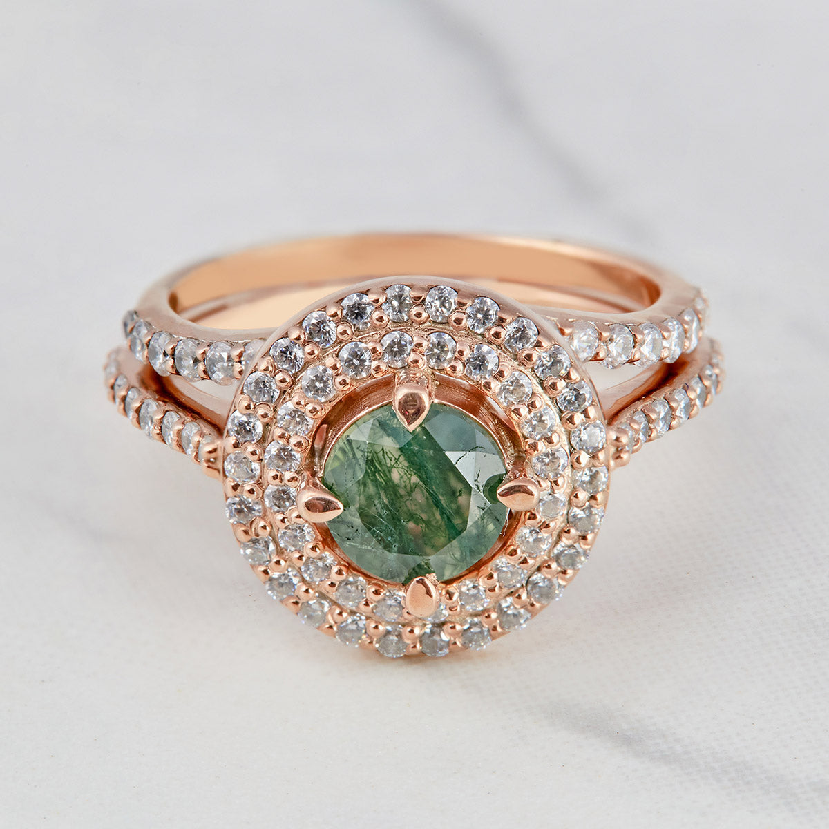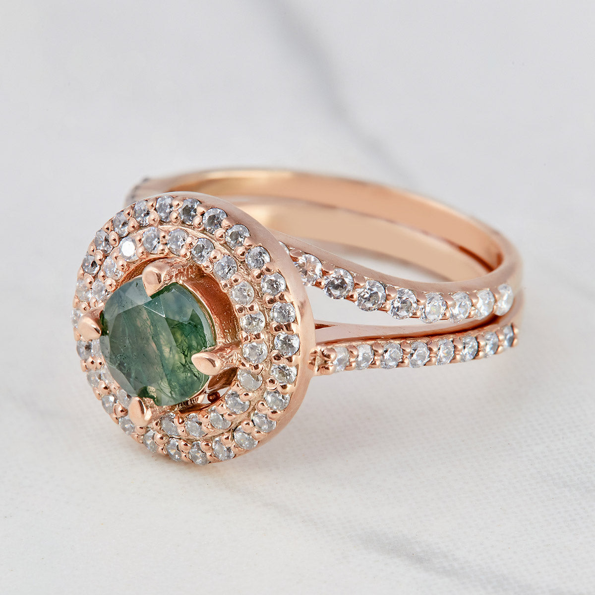 Learn more0.80CT Moss Agate Engagement Ring Set Double Halo Moissanite