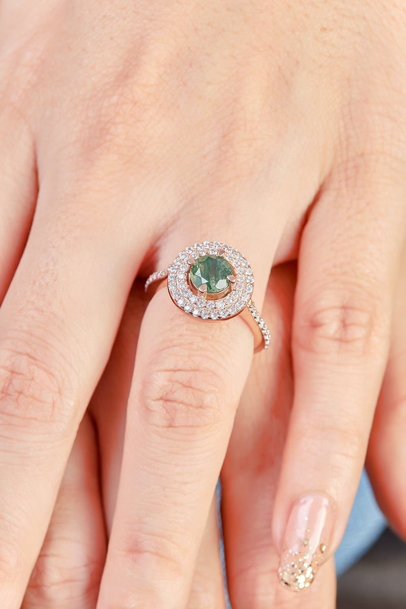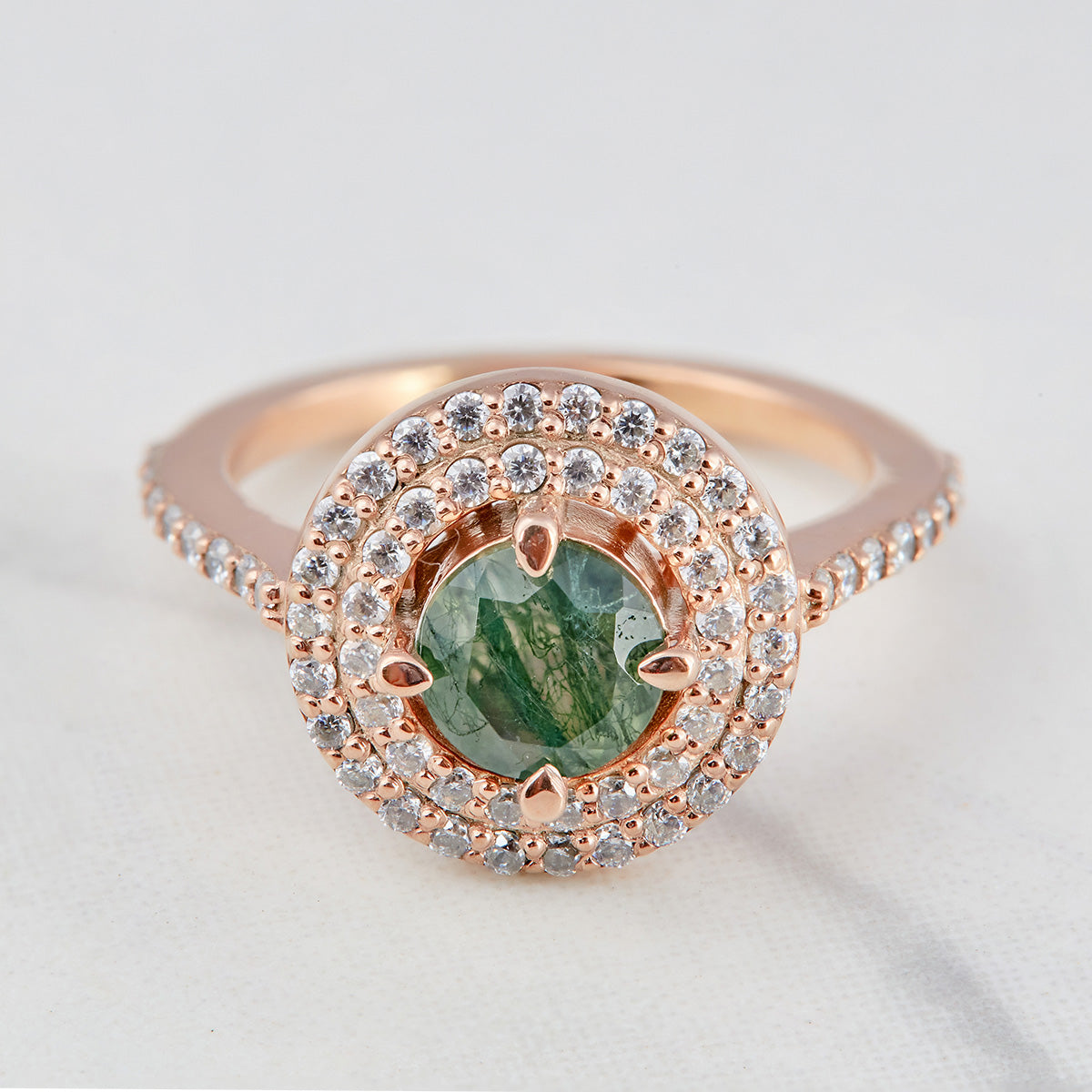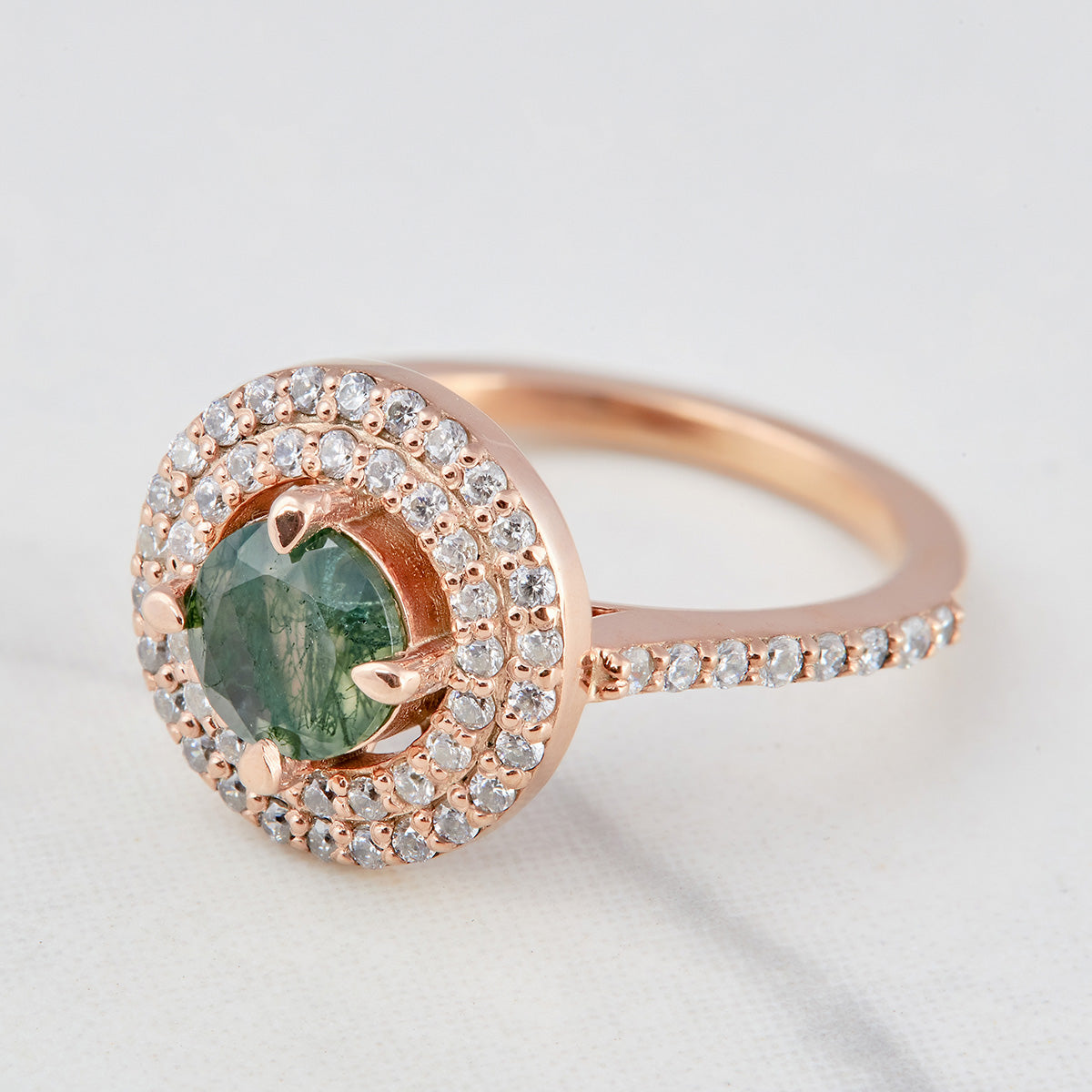 Learn more0.80CT Moss Agate Engagement Ring Set Double Halo Moissanite