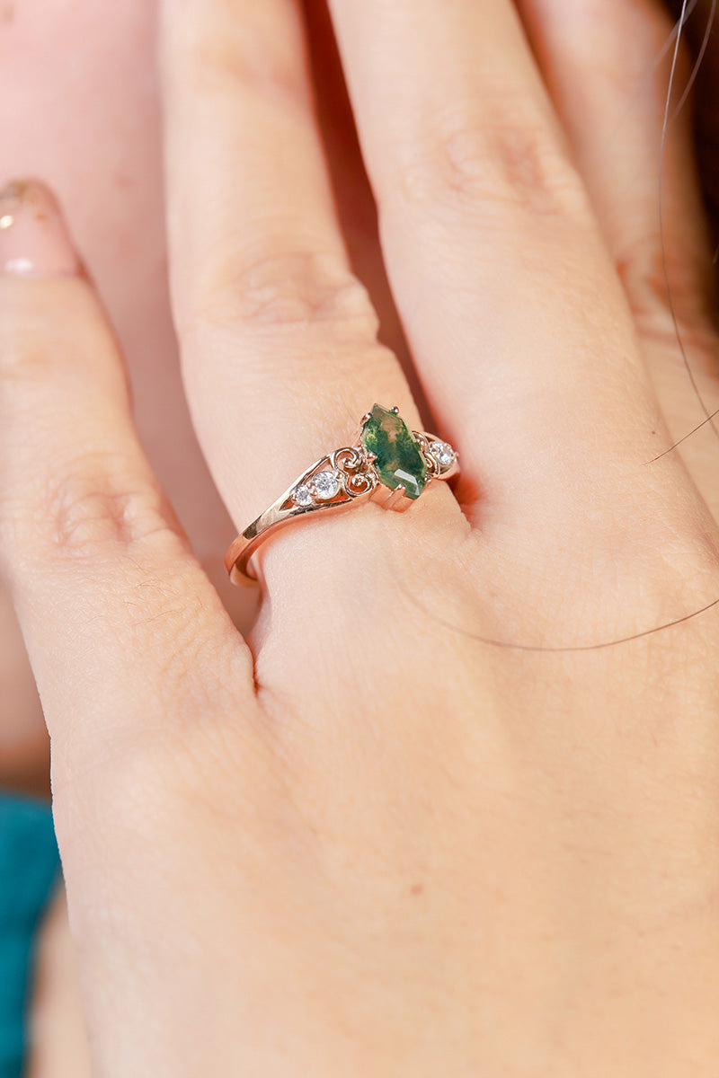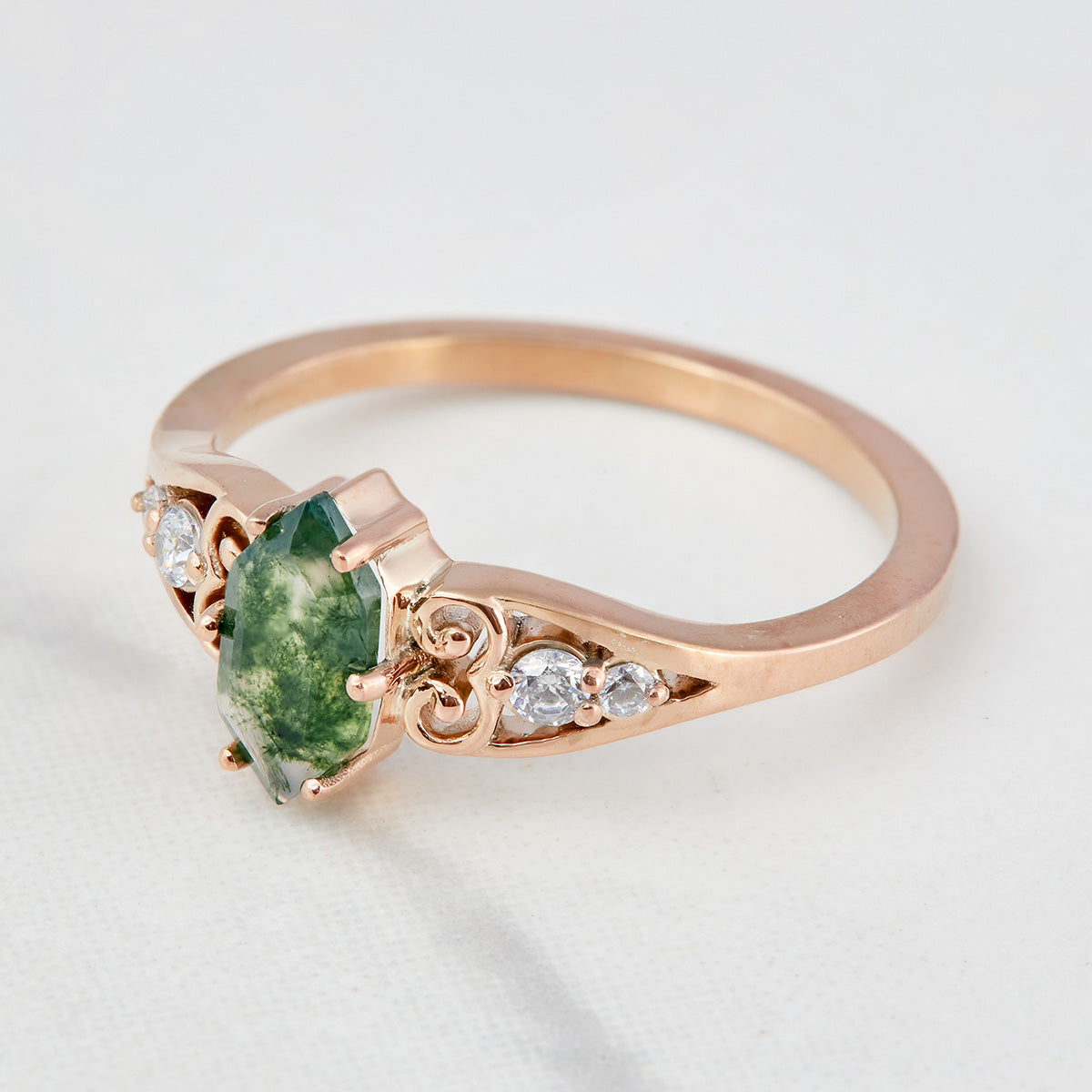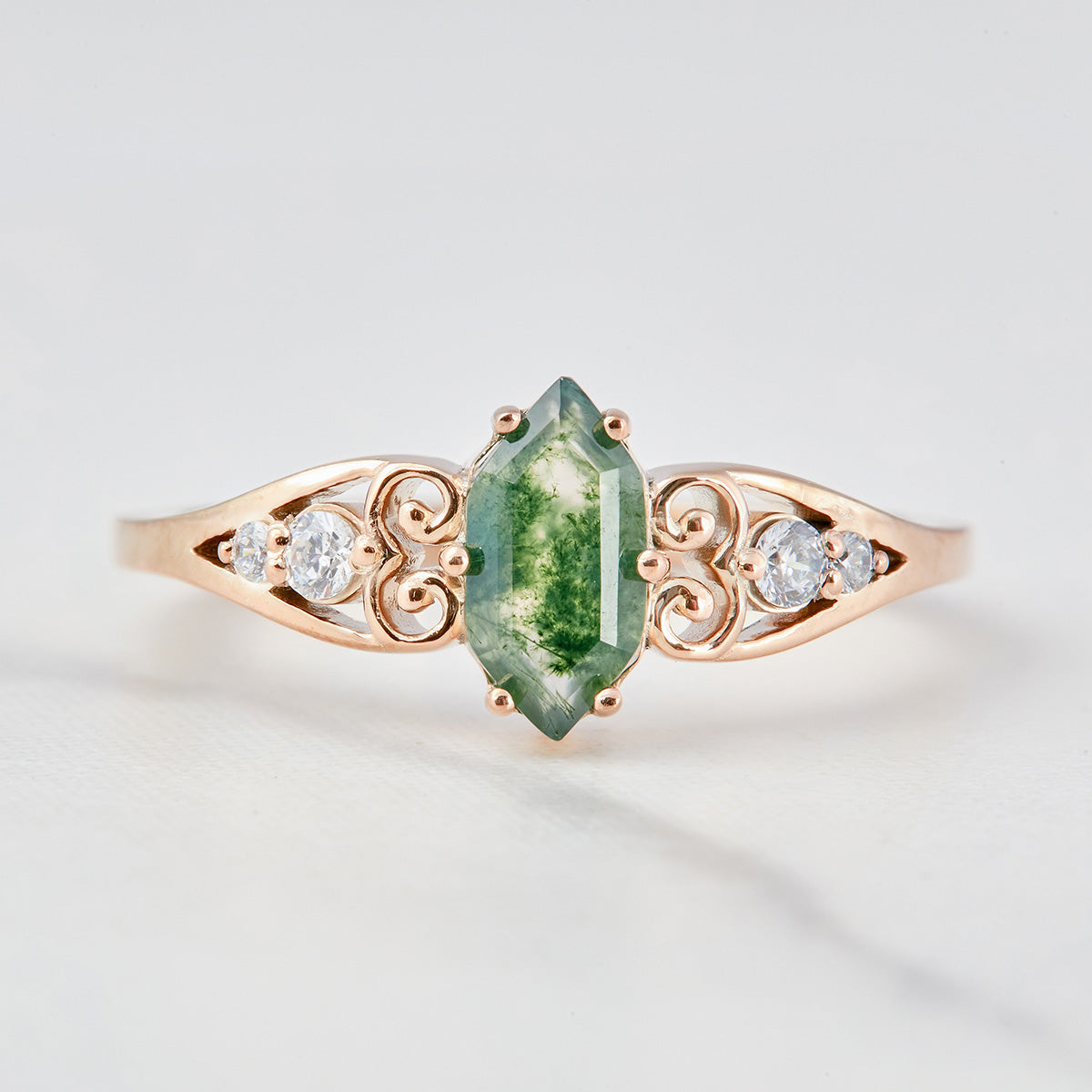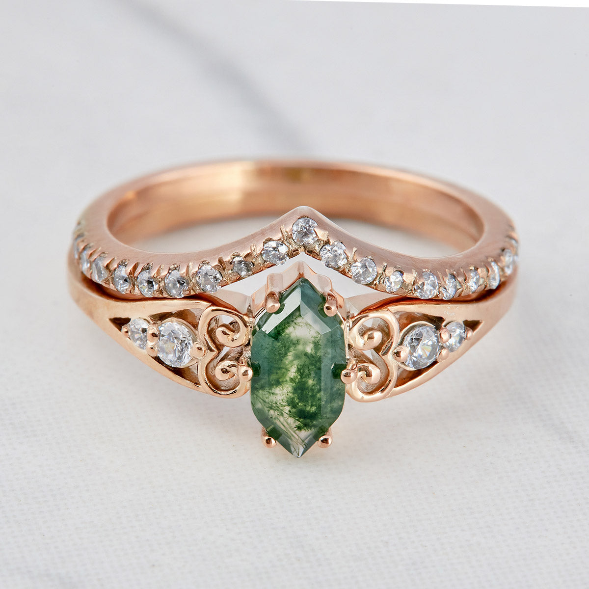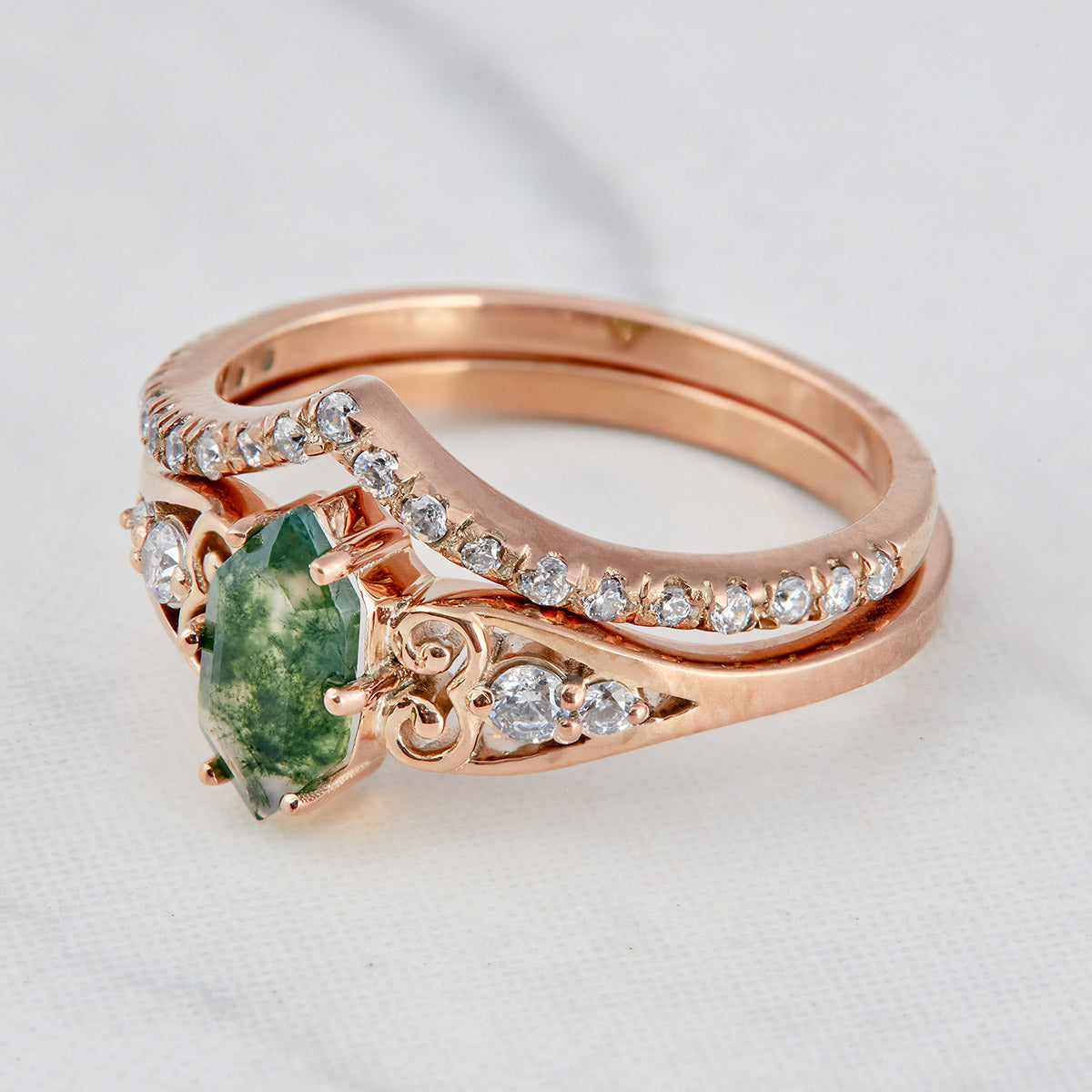 Learn more1.20CT Moss Agate Engagement Ring Set Hexagon Cut Rose Gold