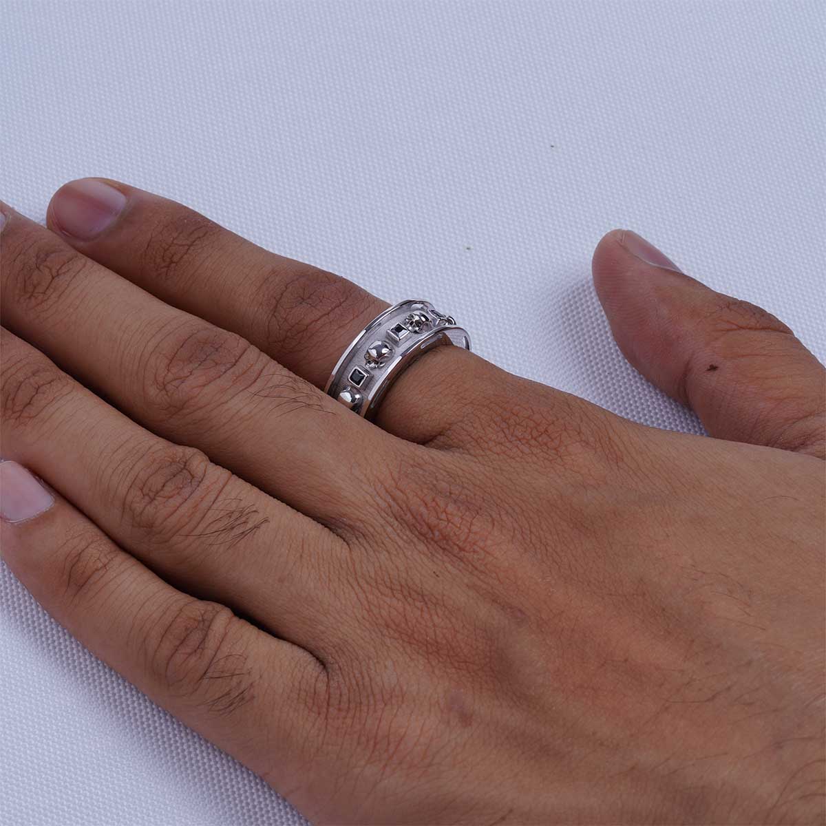 Biker Skull Wedding Band Black CZ Badass Gothic Ring for Men