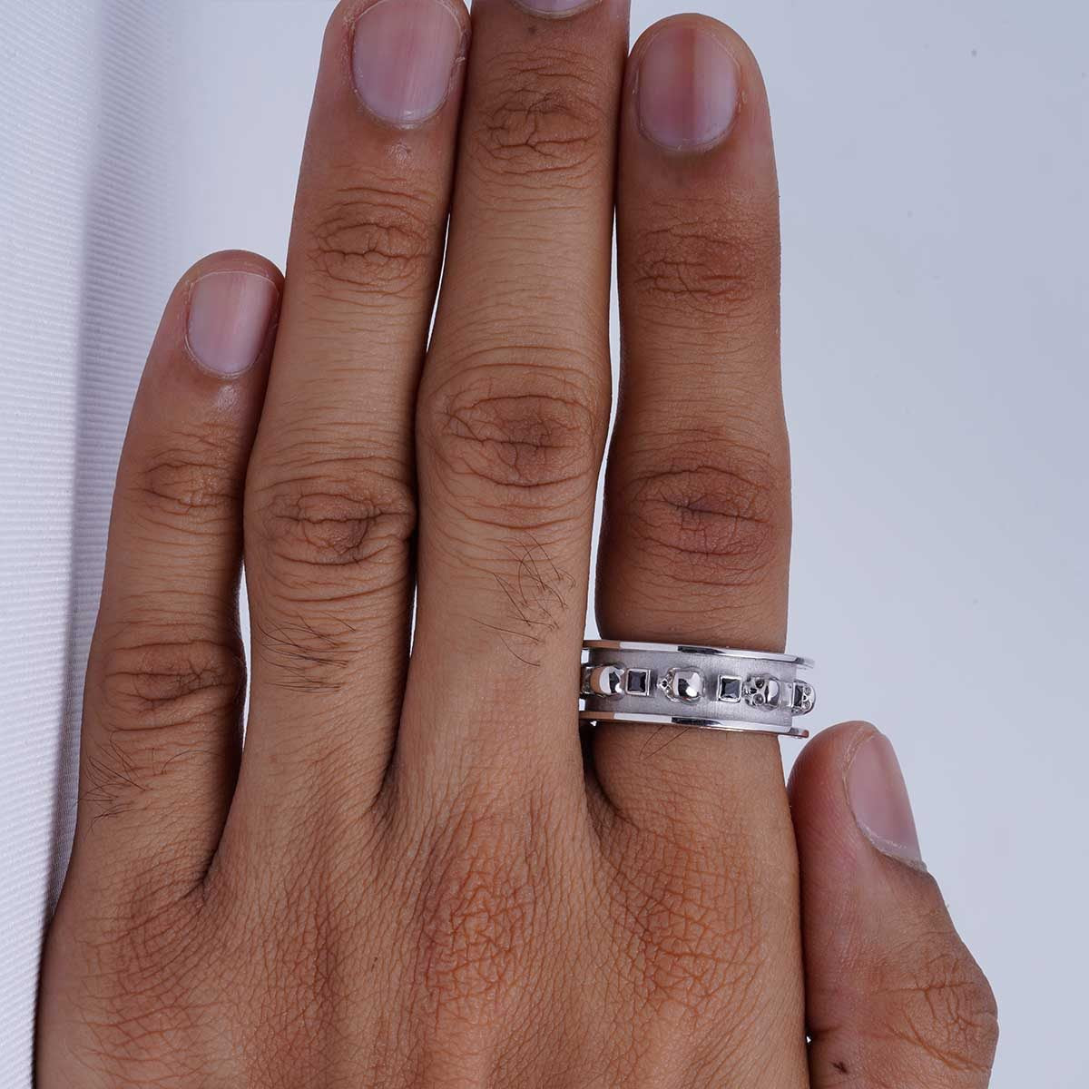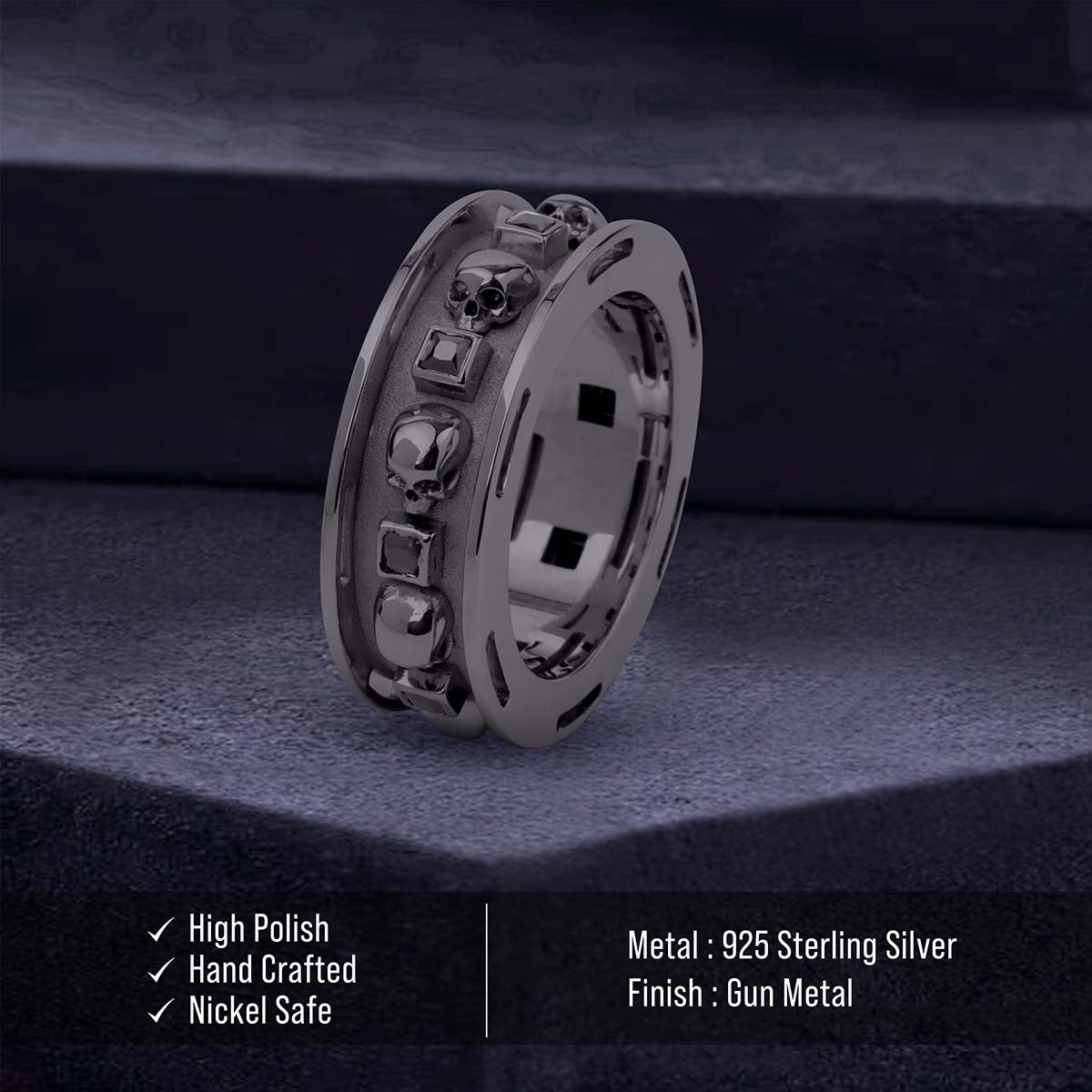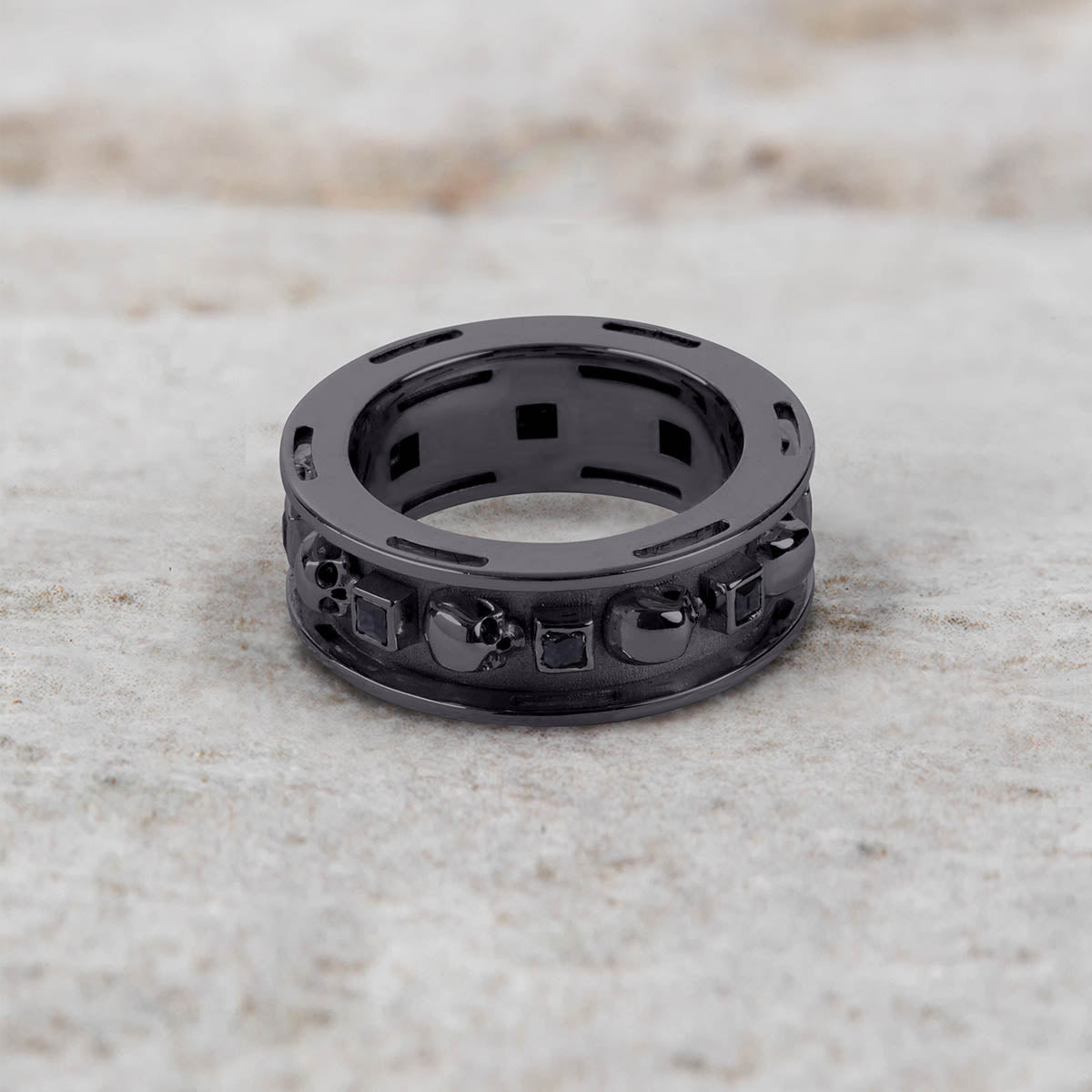 Learn moreBlack Moissanite Skull Wedding Band for Men Gothic Biker Jewelry