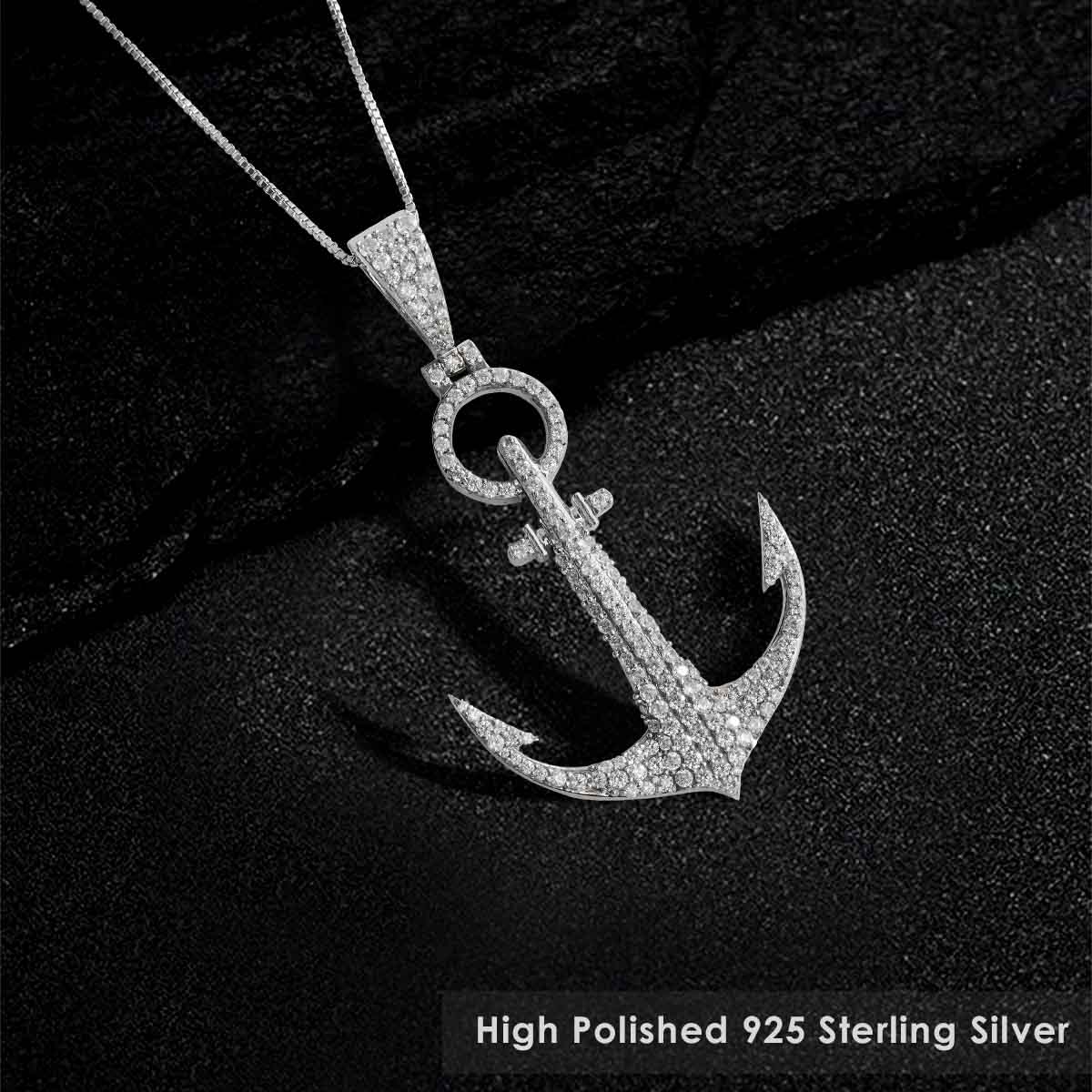 Iced Out Anchor Pendant Necklace Nautical Hip Hop Jewelry AAA CZ Diamond Sterling Silver