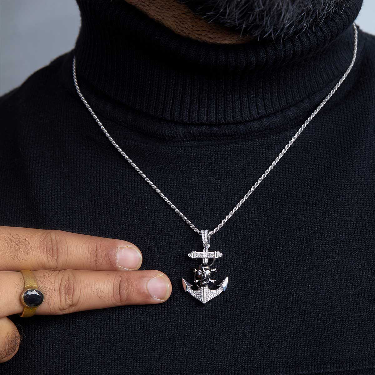 Learn moreSkull and Anchor Necklace Two Tone Iced Out Skull Jewelry Silver
