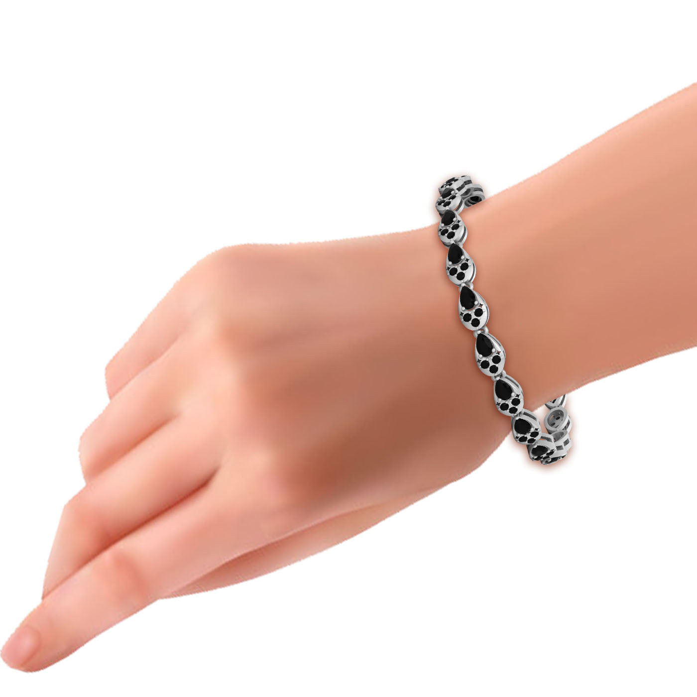 Sterling Silver Tennis Bracelet Pear Cut Black Onyx Wedding Bracelet