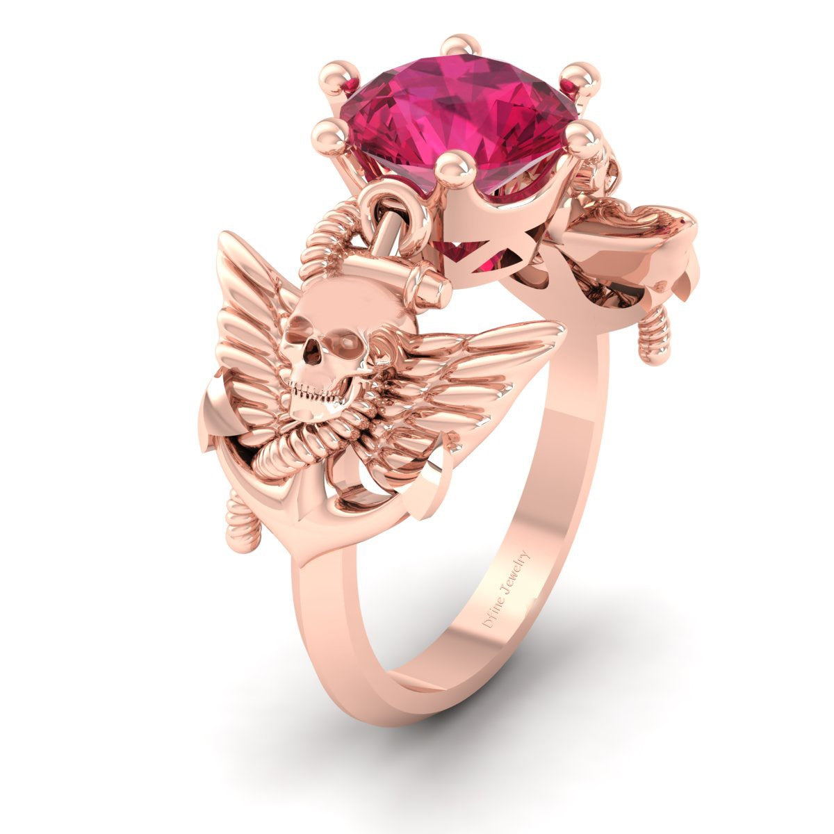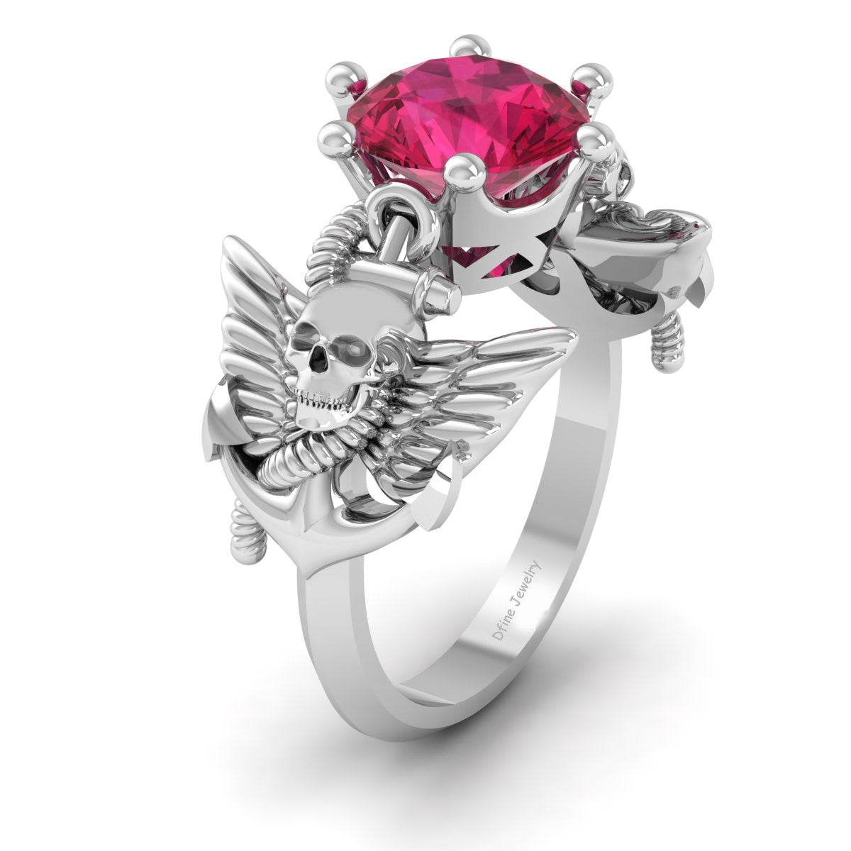 Wings Skull Engagement Ring Nautical Anchor Blue Sapphire