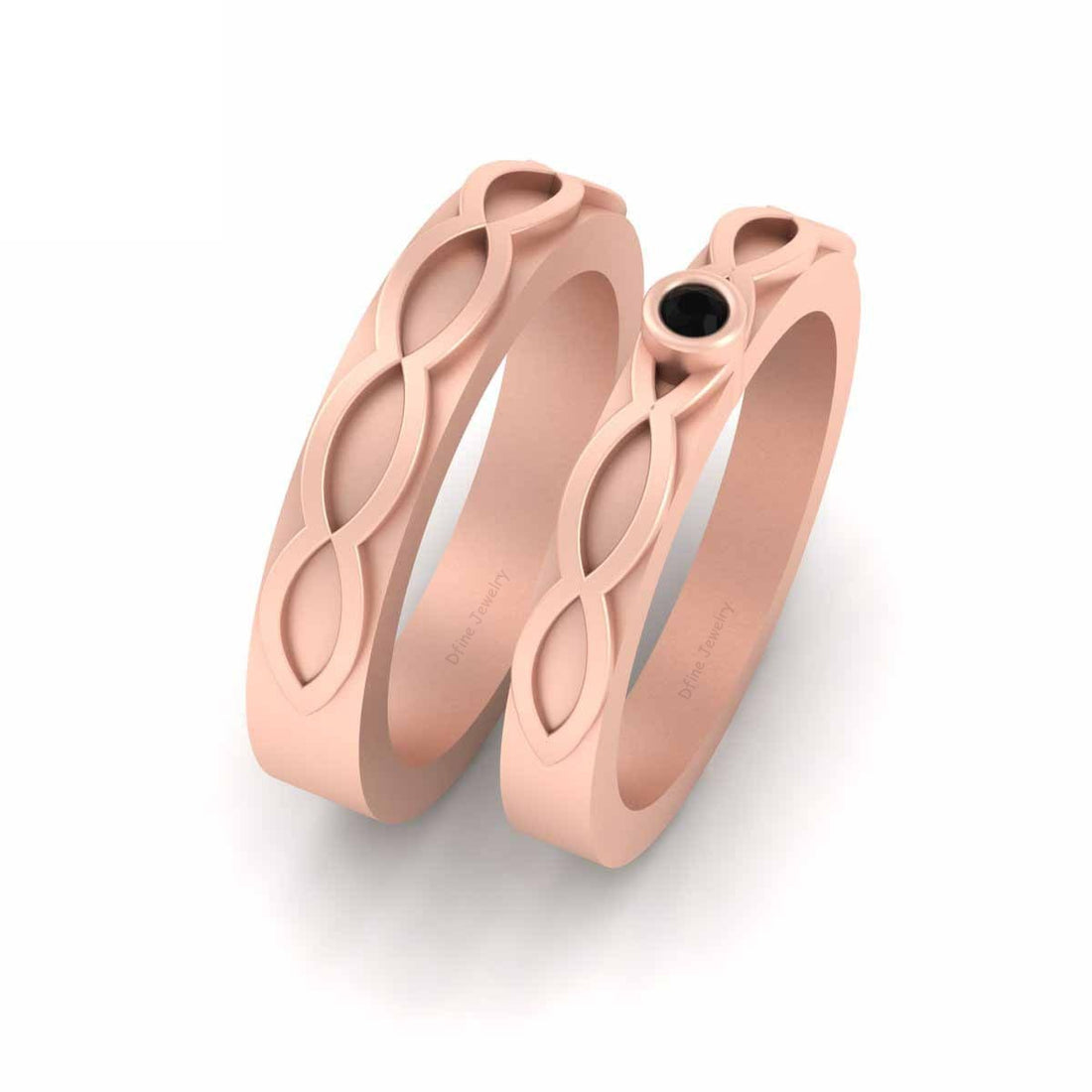 Matching Eternity Bands His Her Couple Set Black Onyx Rose Gold